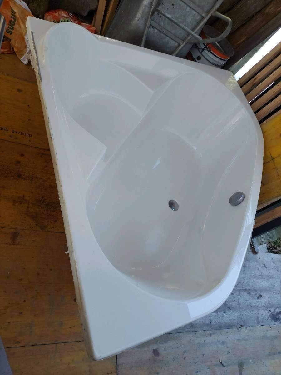 gebrauchte aber noch einwandfreie Eckbadewanne wegen Umbau zu verschenken, nur Selbstabholer. Schenkelmas 140×140 cm