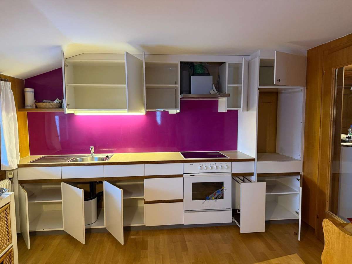 Verschenke hier eine schon ältere Tischlerküche mit Backrohr/Herd/Kühlschrank/Dunstabzug, siehe Bilder. Geräte funktionieren alle. Maße: Länge 349cm, Höhe 213,5. Küche wird ausgebaut und kann dann kostenlos mitgenommen werden. Aber nur alles zusammen wie...