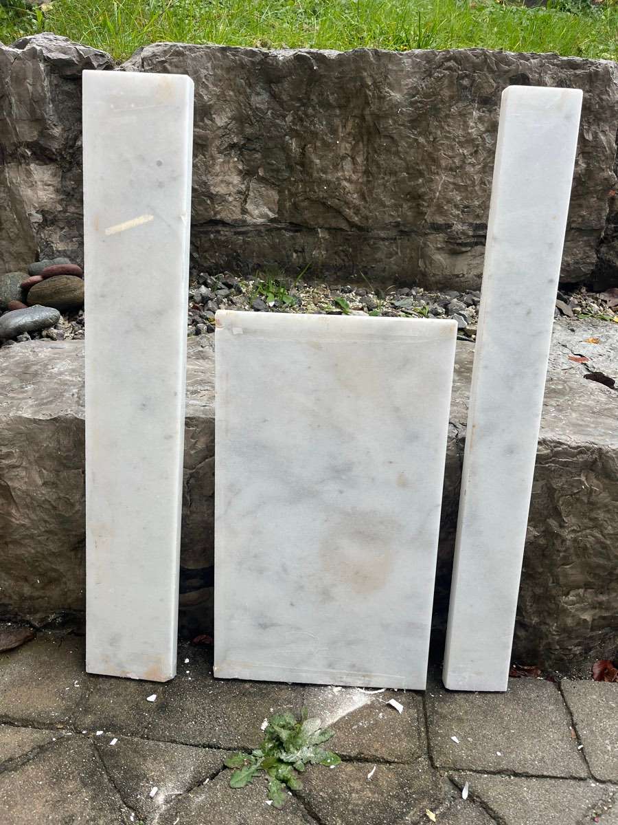 Drei Fensterbrett aus weißen Marmor, gebraucht, Maße: 13 × 81,5 9 × 81,2 54 × 31,5, Dicke 2,6 cm Material weißer Marmor, die Angabe oben stimmt nicht… Gab es nicht