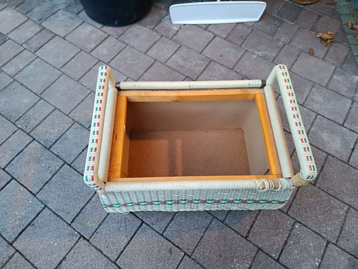 Sitztruhe gepolstert aus Rattan
