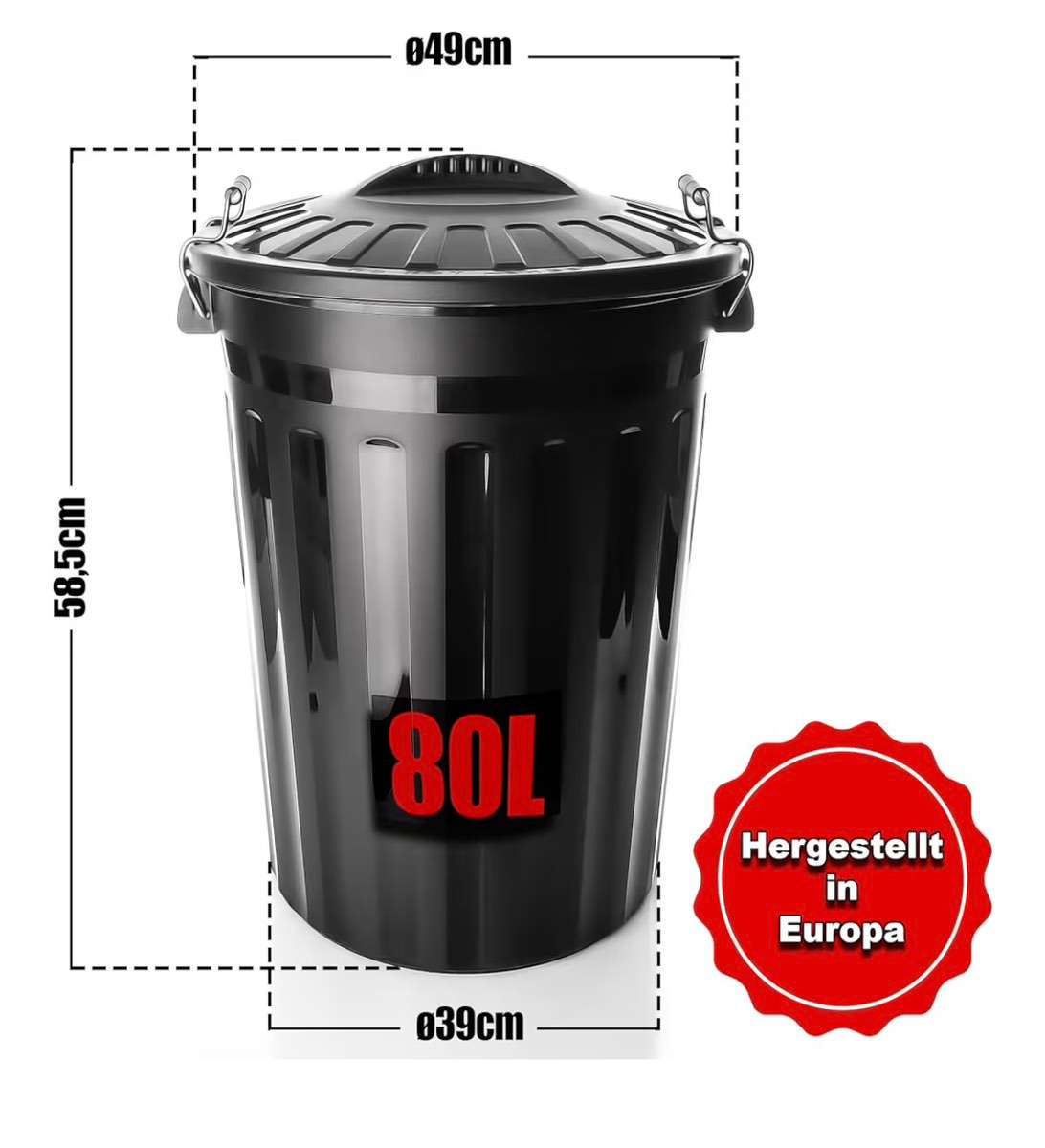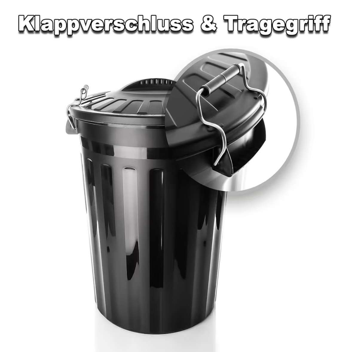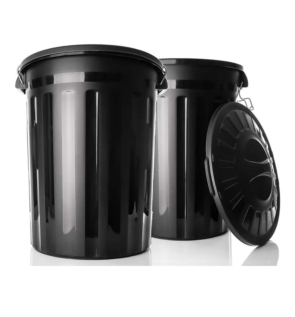 2 schwarze runde 80L Mülltonnen neu