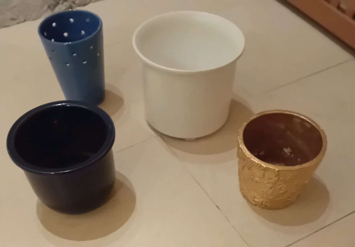 Der kleinste hat einen 10 cm Durchmesser Und der größte 17 cm Die Blumentöpfe sind zwischen 10 &13 cm hoch Nur Abholung Keine Rücknahme oder Garantie