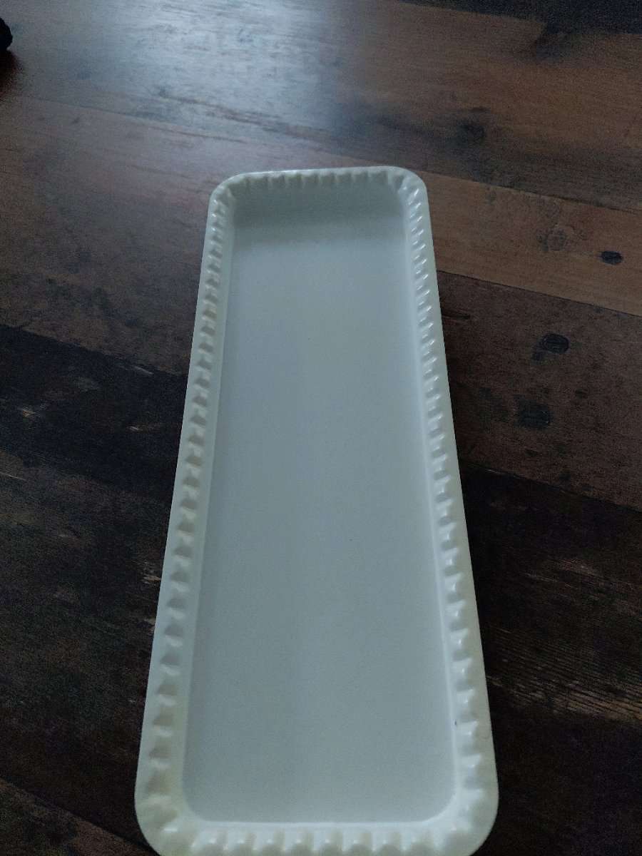1 Metall- Tablett weiß- das Tablett war als Deko in Verwendung und ist nur ein bisschen ausgebleicht Länge 35 cm, Breite 12,5 cm Hat zufällig jemand Verwendung dafür..? Bitte auch meine anderen Anzeigen beachten..!