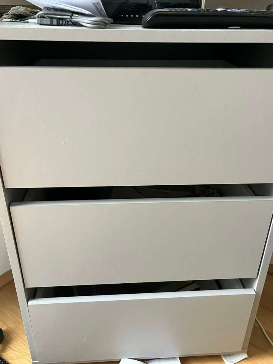 Mattgraue Kommode so hoch wie ein Nachttisch mit 3 Schubläden. Selbstabholung
