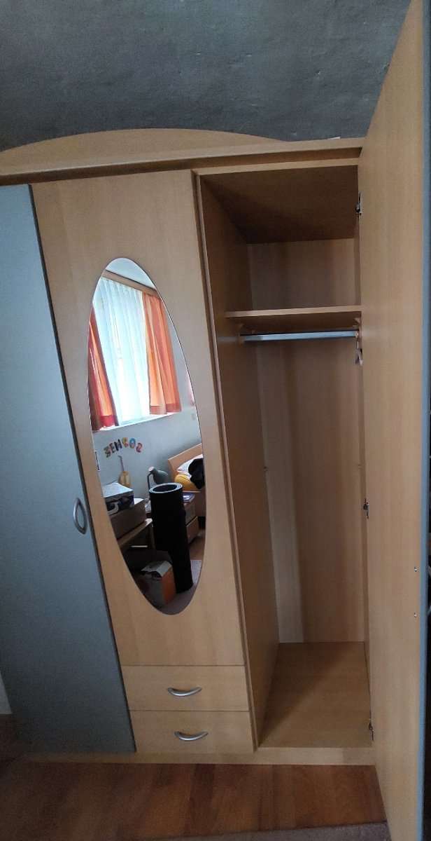 Grau und Holzoptik 3-türig, mit Spiegel mittig und 2 Laden Höhe 205 cm Breite 137 cm Tiefe 54 cm Zum selber abbauen und abholen!!!!
