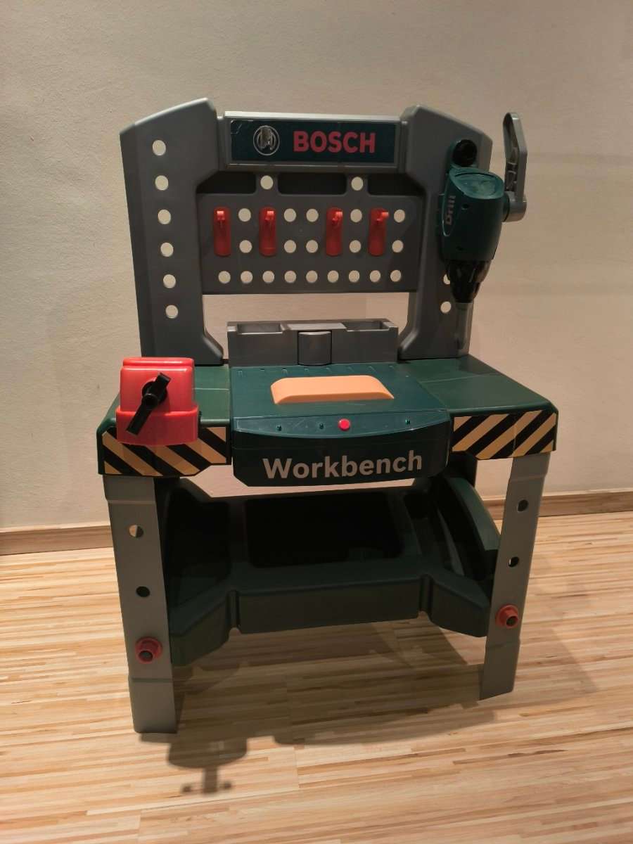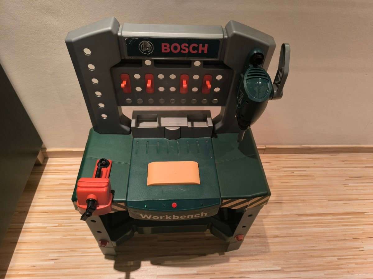 Mittelgroße Kinder Bosch Werkbank Ohne Werkzeug Das "Schleifband" funktioniert derzeit leider nicht, da die Kontakte bei den Batterien beleidigt sind, da früher Batterien ausgelaufen sind. Möglicherweise kann es ein Bastler reparieren, dann macht das...