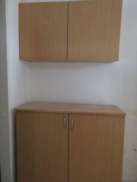 Schrank 2 türig mit 3 Fächer, Buche, 100 x 38 x 100 cm hoch, Hängeschrank 2 türig mit 1 Fach, Buche, 100 x 27 x 56 cm hoch für Abstellraum, etc. geeignet. Es passen viele Vorratsgläser hinein. Selbstabholung