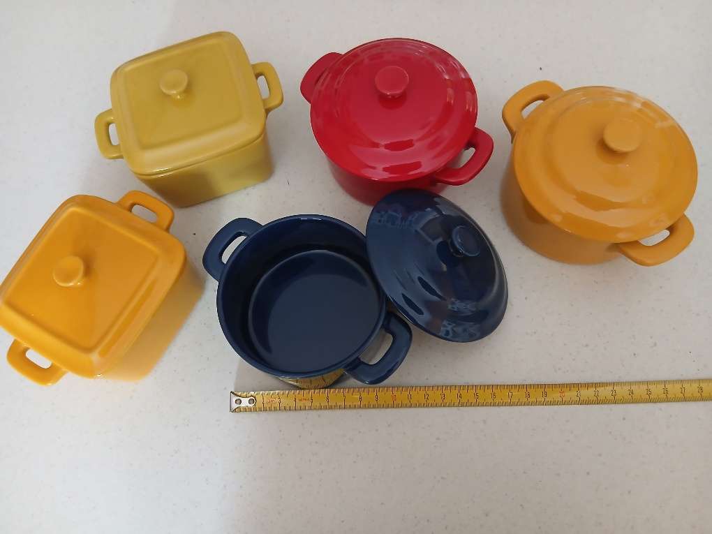 5 kleine Keramikschüsseln mit Deckel