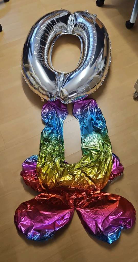Verschenke 2 Folienballons mit der Zahl 0 - oder o 1x noch aufgeblasen Silber 1x ausgelassen - Regenbogen Farben, mit Standfuß - steht wenn er aufgeblasen ist Vielleicht hat noch jemand eine Freude damit Abholung nach Absprache auch in 2333 Leopoldsdorf...