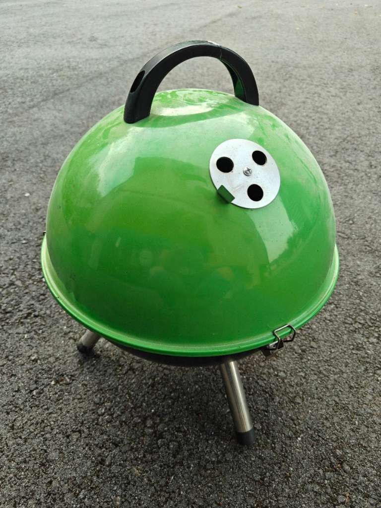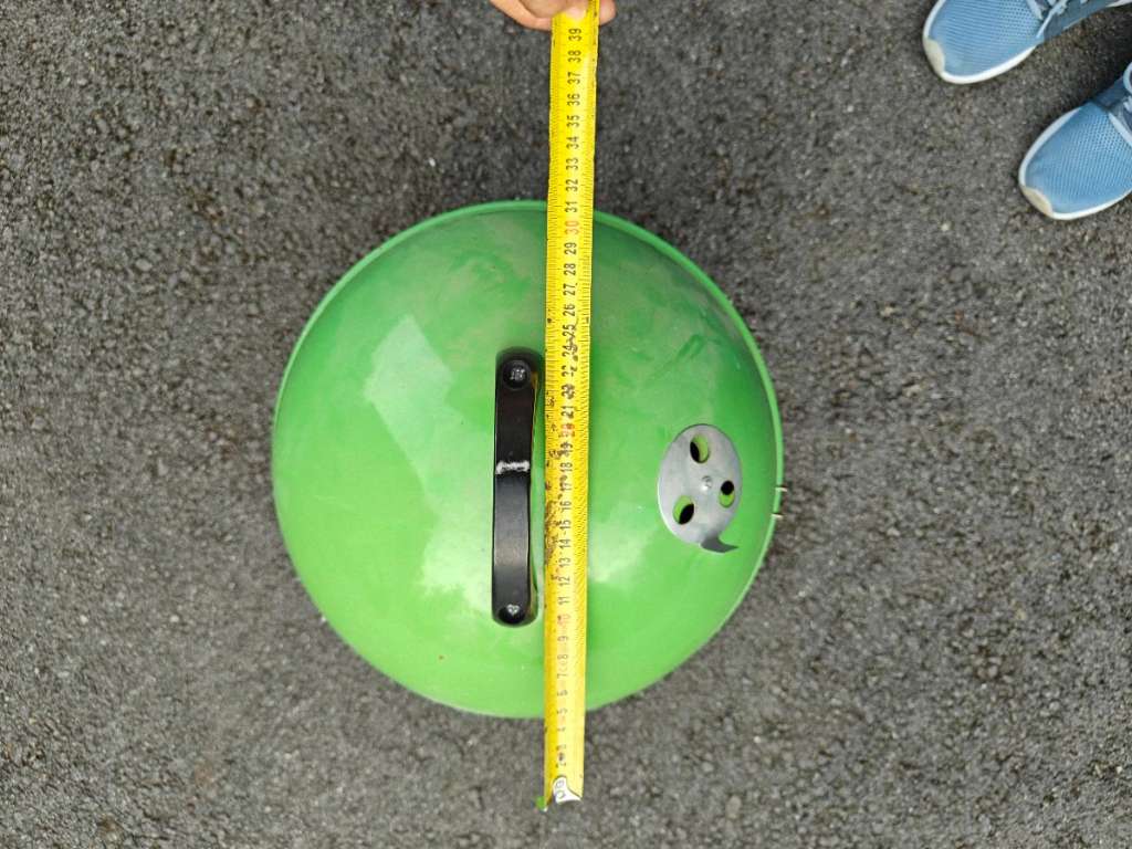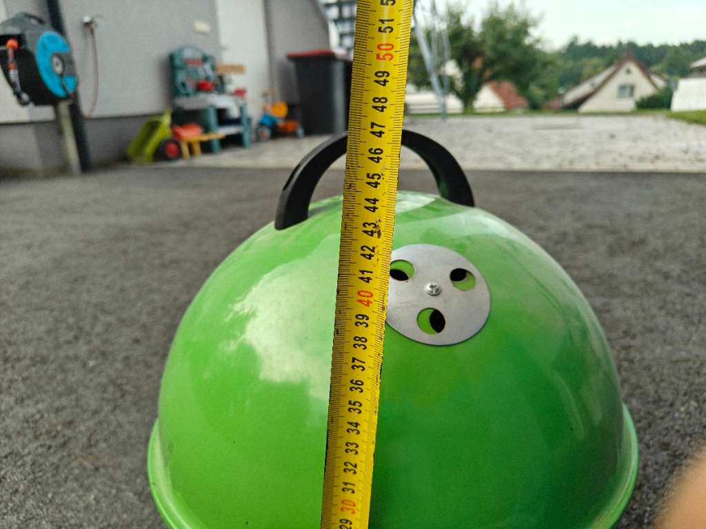 Kleiner grüner Kugelgrill für Holzkohle lt. Bilder zu verschenken Durchmesser ca. 35cm. Griff wurde geklebt, ansonsten funktioniert er.