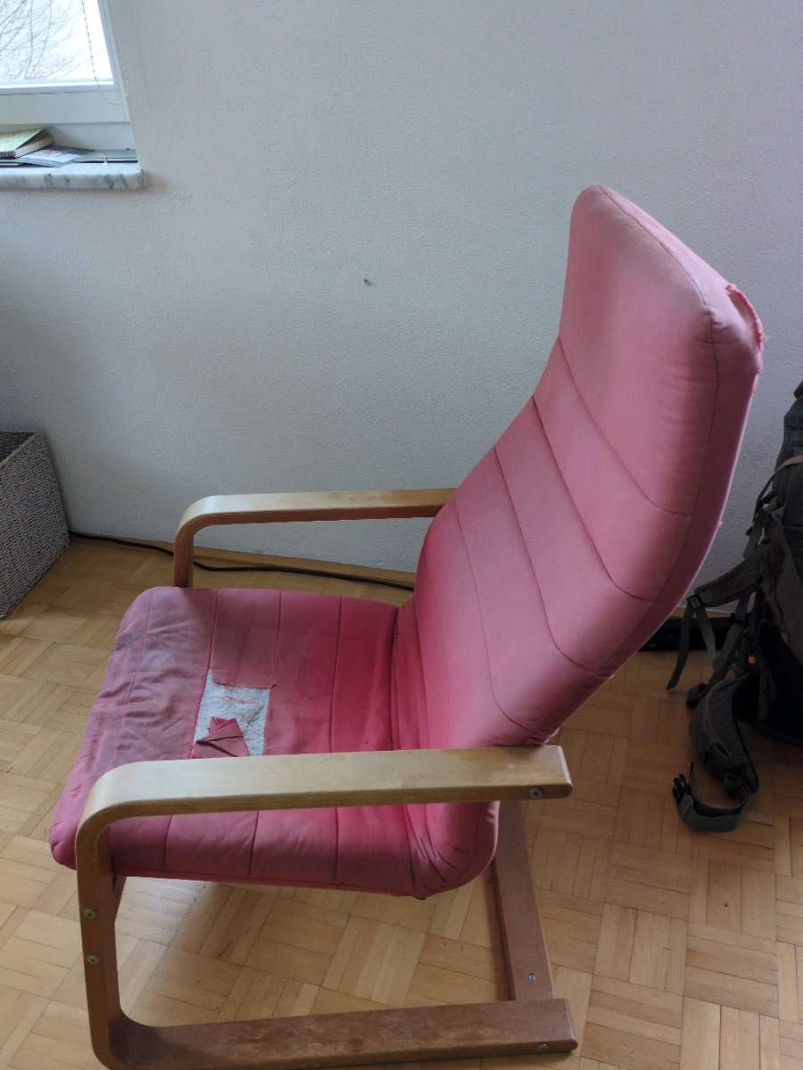 Der Stoff ist ein bisschen gerissen aber mit einer Decke oder Überzug ist er noch gut benutzbar.