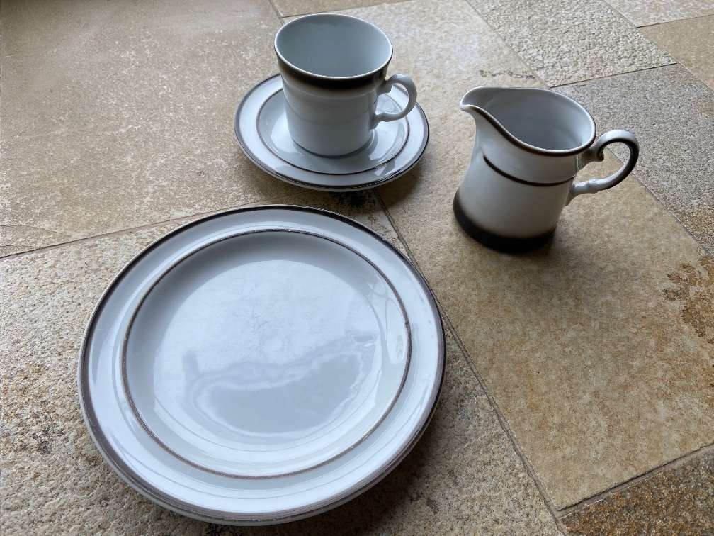 Kaffeeservice: 4 Tassen, 4 Untertassen, 3 Kuchenteller, 1 Milchkanne