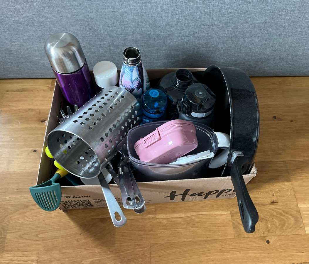 Wie abgebildet Pfanne groß Diverse Trinkflaschen Pfannenwender Schöpfer Utensilienständer Gewürzschere Knoblauchpresse Schäler Eusportionierer Käsehobel Tasse BWT Wasserfilter Wird nur im Ganzen vergeben! Nur Selbstabholung! Wohnen Küche Haus Garten...