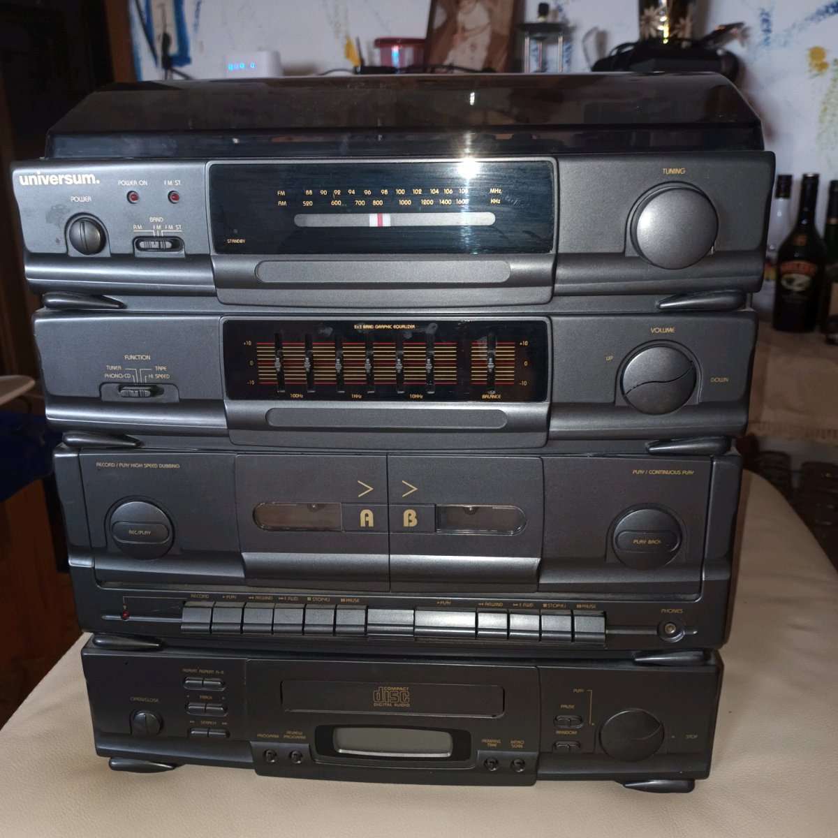 Alte Stereoanlage von UNIVERSUM mt 2Boxen zu verschenken. RADIO, CD PLAYER und TAPE funktionieren. PLATTENSPIELER konnte nicht getestet werden, da Nadel fehlt. Verstaubt muss selbst gereinigt werden. Nähere Daten siehe Fotos. Privat Verkauf. Keine...