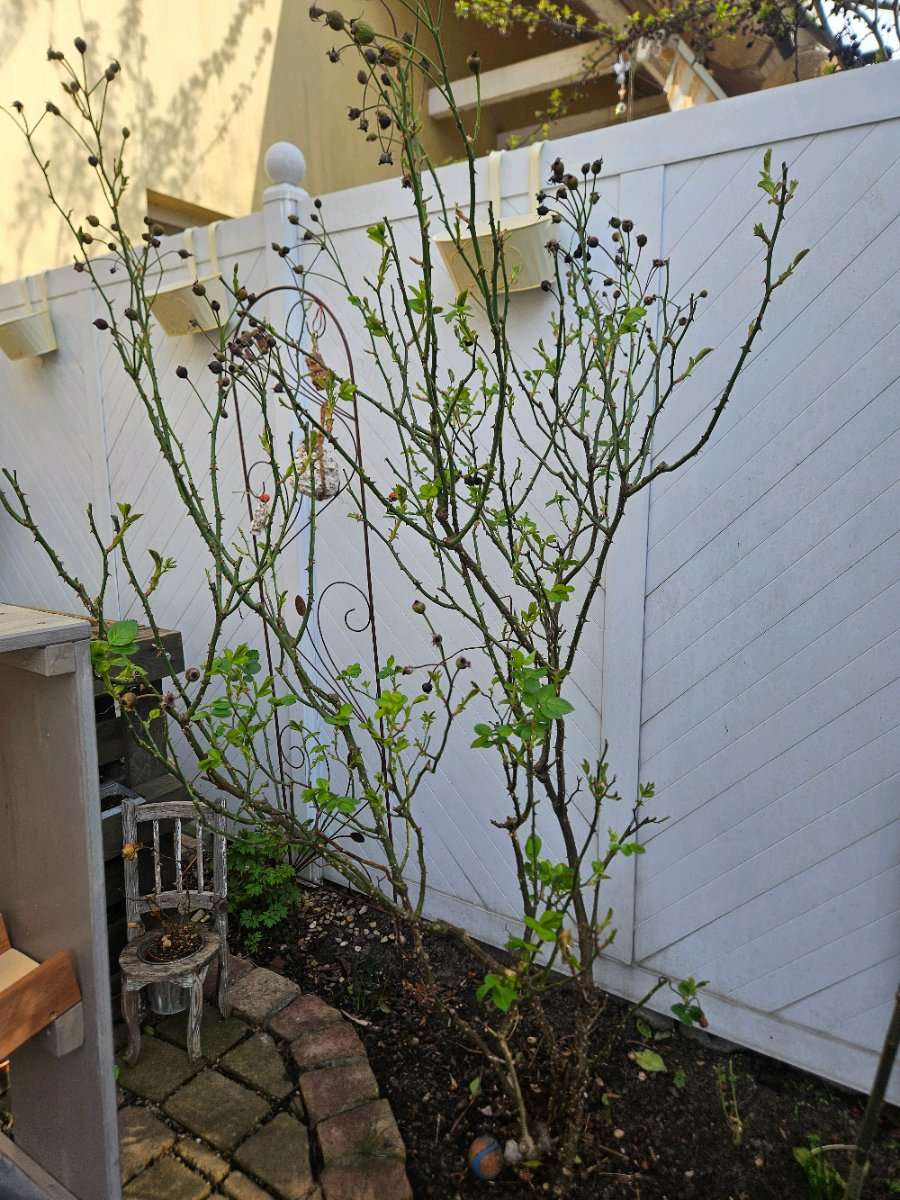 Verschenke diese alte und schöne Rose, da wir eine Ersatzpflanzung vornehmen wollen. Sie blüht in einem schönen Magentarot und wurde noch nicht zurück geschnitten. Derzeitige Höhe ca. 160cm.