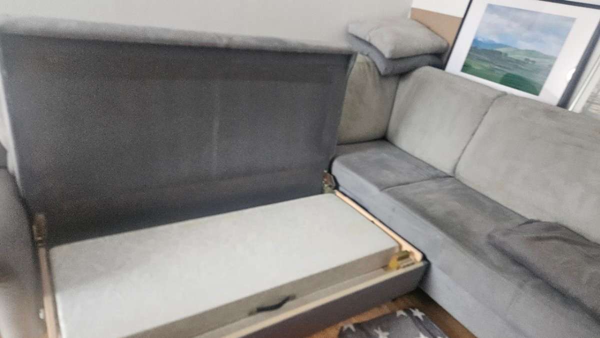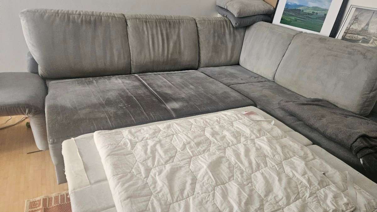 Verschenke gebrauchte graue ausziehbare Couch. Maße 250x210 Liegeplätze 195x195 Nur Selbstabholer! 2 Leute für den Transport notwendig, kann in 2 Teile geteilt werden, sind sehr schwer.