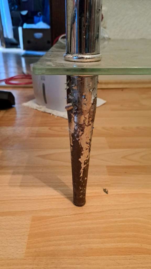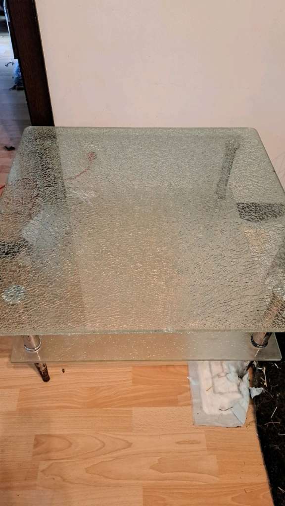 Verschenke Crashglas Couchtisch. Die Beine des Couchtisches blättern leider ab - stört aber evtl nicht so stark. Tischplatte komplett in Ordnung.