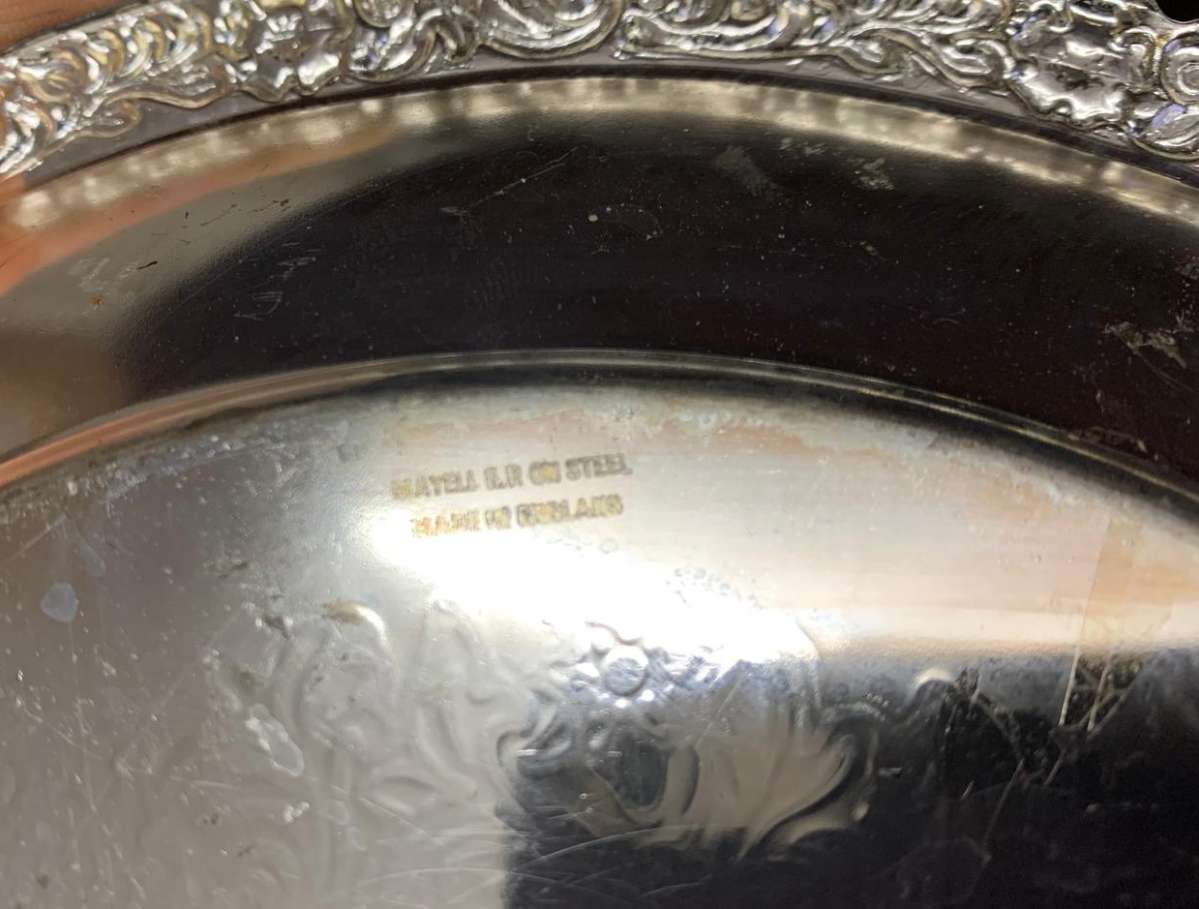 Metallteller made in England, hat schon ein paar Gebrauchsspuren
