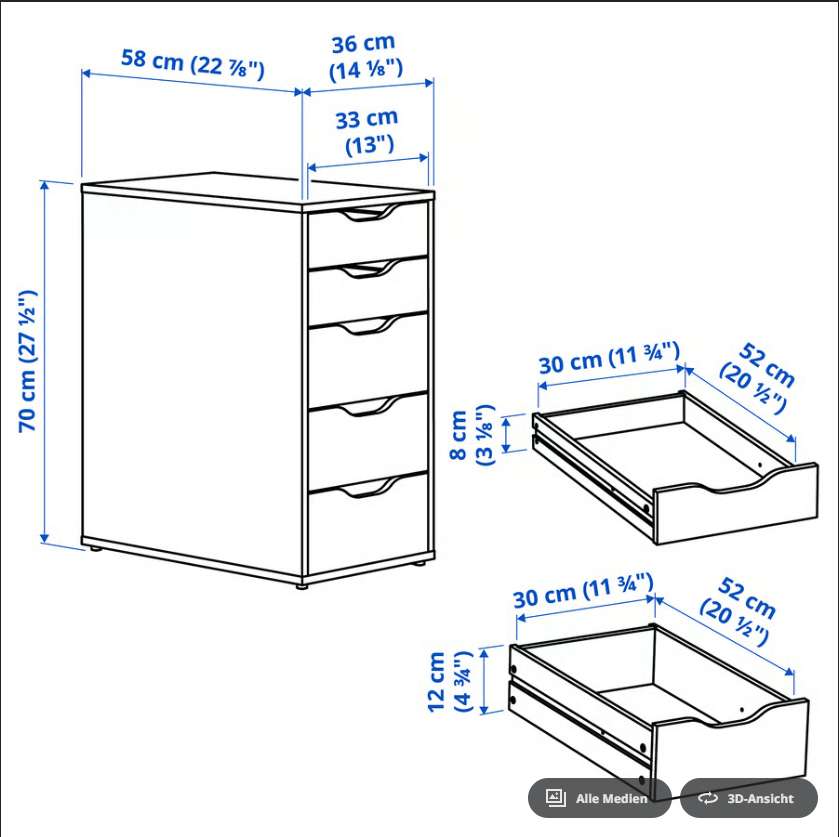 Selbstabholung. wird bei meiner Wohnungstüre abgegeben, Lift vorhanden. Abholung idealerweise heute 16.03.2026. Ikea Alex Kästchen und Ikea Ivar Regal werden gemeinsam abgegeben.