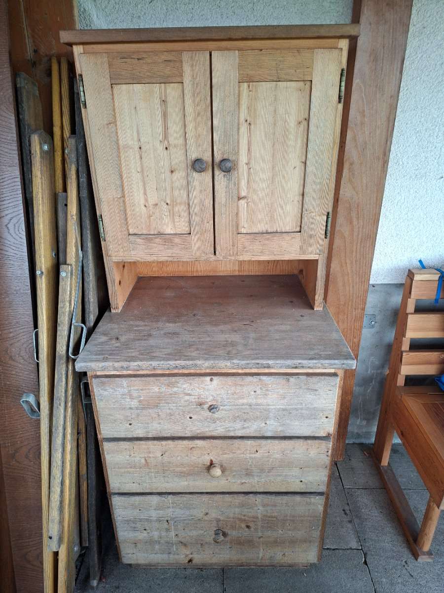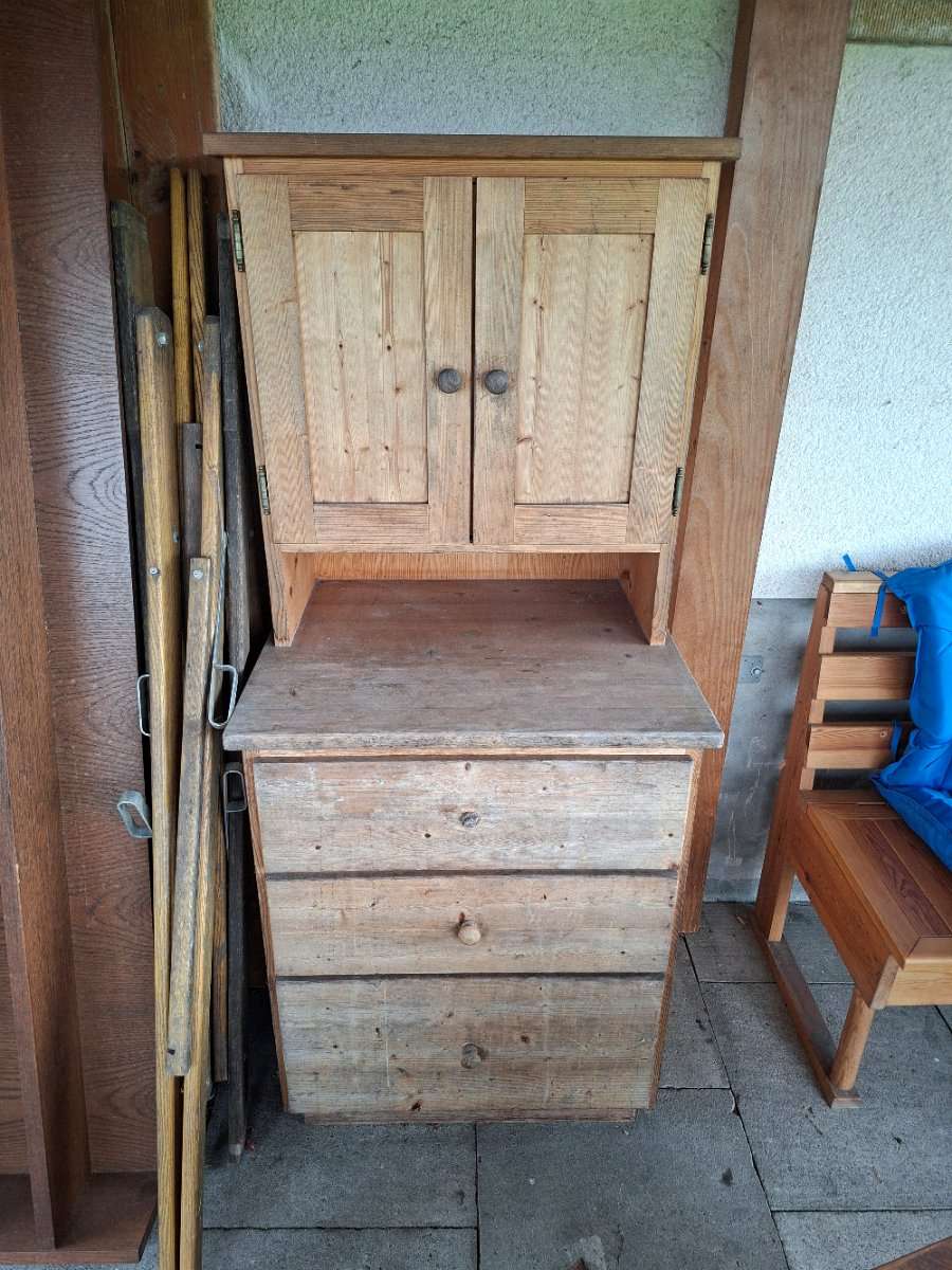 Anrichte Massivholz zu verschenken. Maße 164 hoch Tiefe unten 60 und oben 34 cm Breite 71