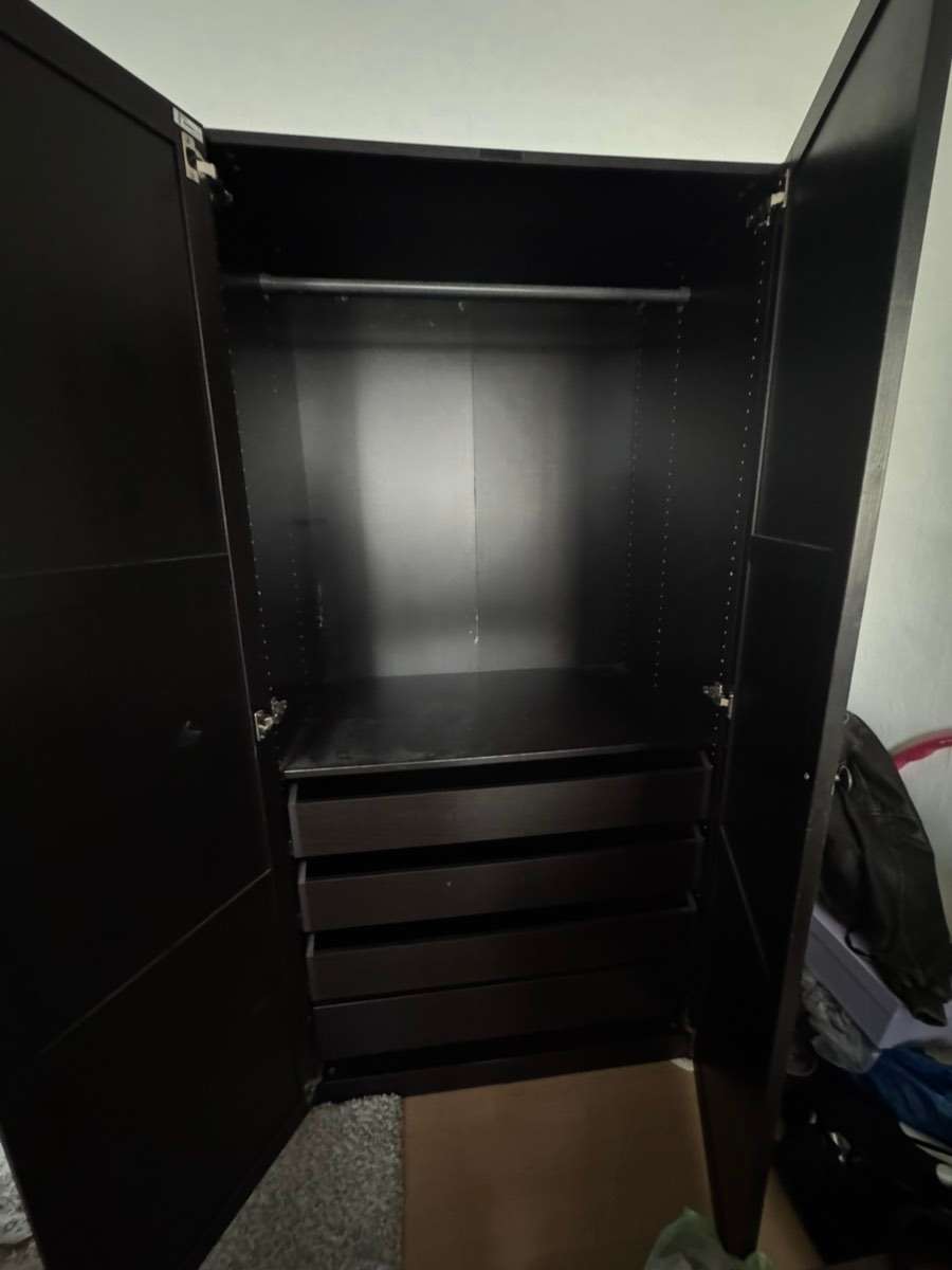 Regulärer PAX Kleiderschrank, bereits gebraucht gekauft. Verschenke ihn aufgrund von Umzug, Basisfunktion ist erhalten. Selbstabbau sowie Abholung in 1020 Wien.