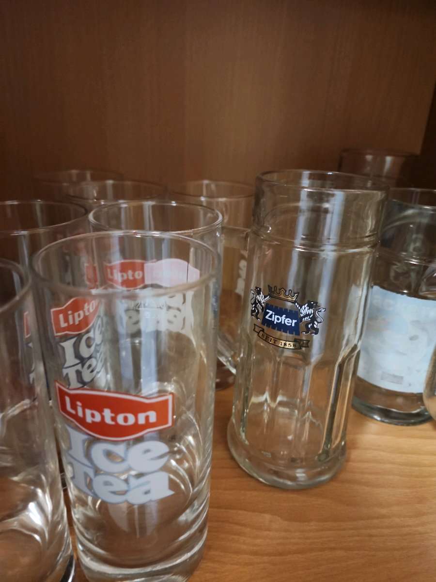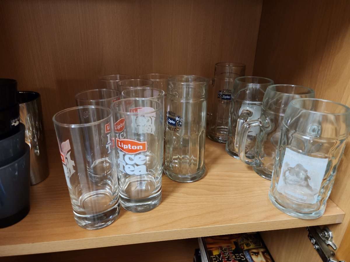 Verschieden Gläser zu verschenken: Wasser-, Bier- und Weingläser.