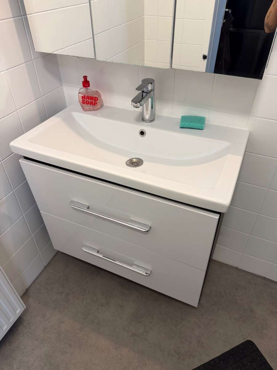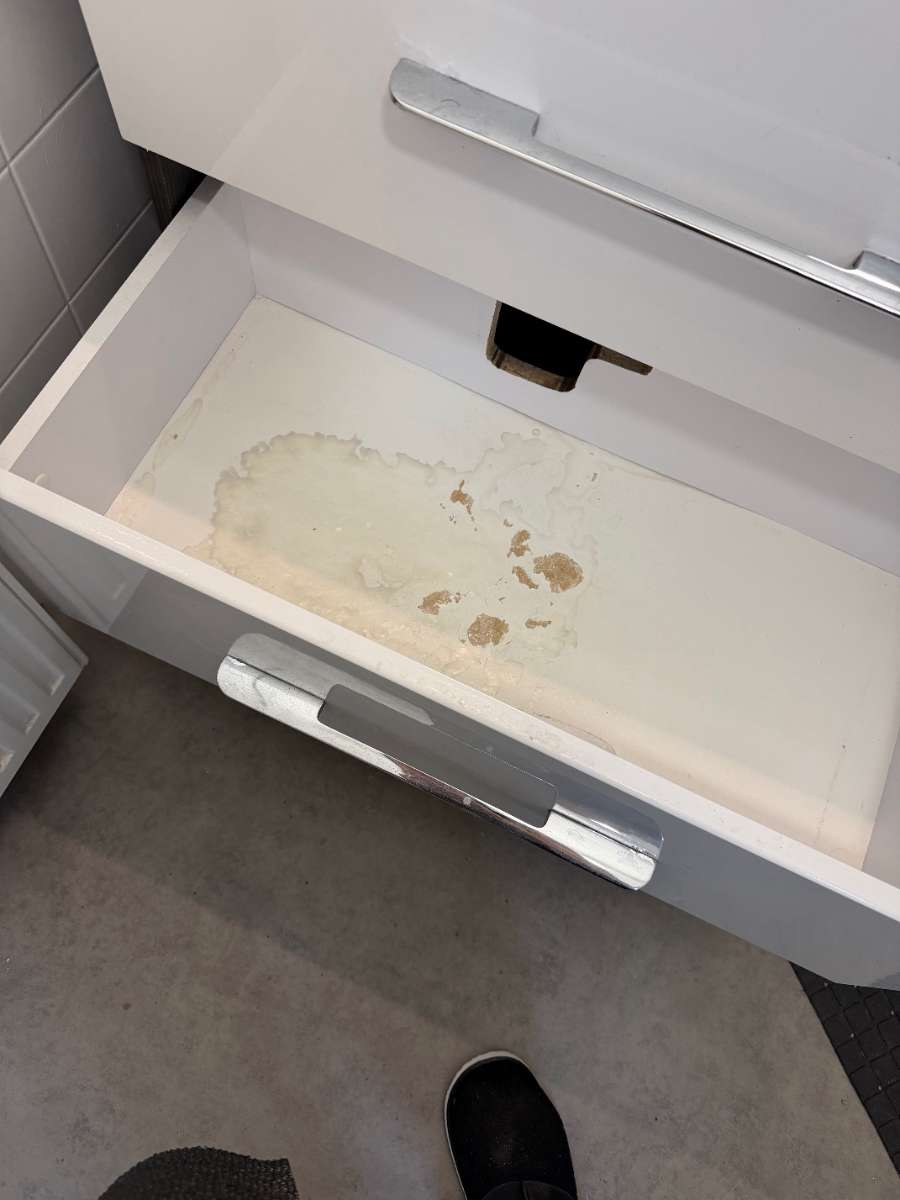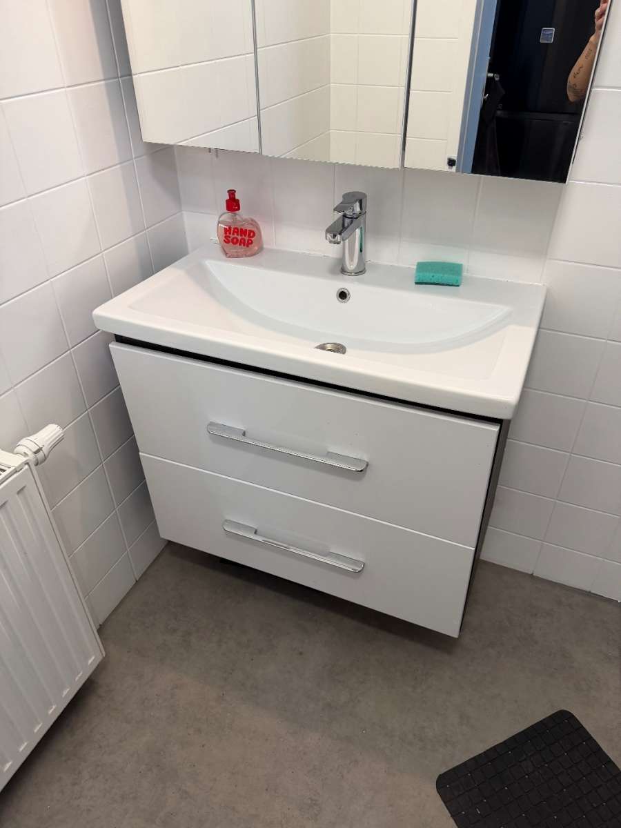 BITTE ALLES LESEN!!!! verschenke ein Waschbecken mit Unterschrank, bitte genau die Fotos Ansehen, am Anfang war der Siphon undicht und in der unteren Lade hat sich Wasser angesammelt, kann man aber mit einer Einlage problemlos überdecken OHNE...