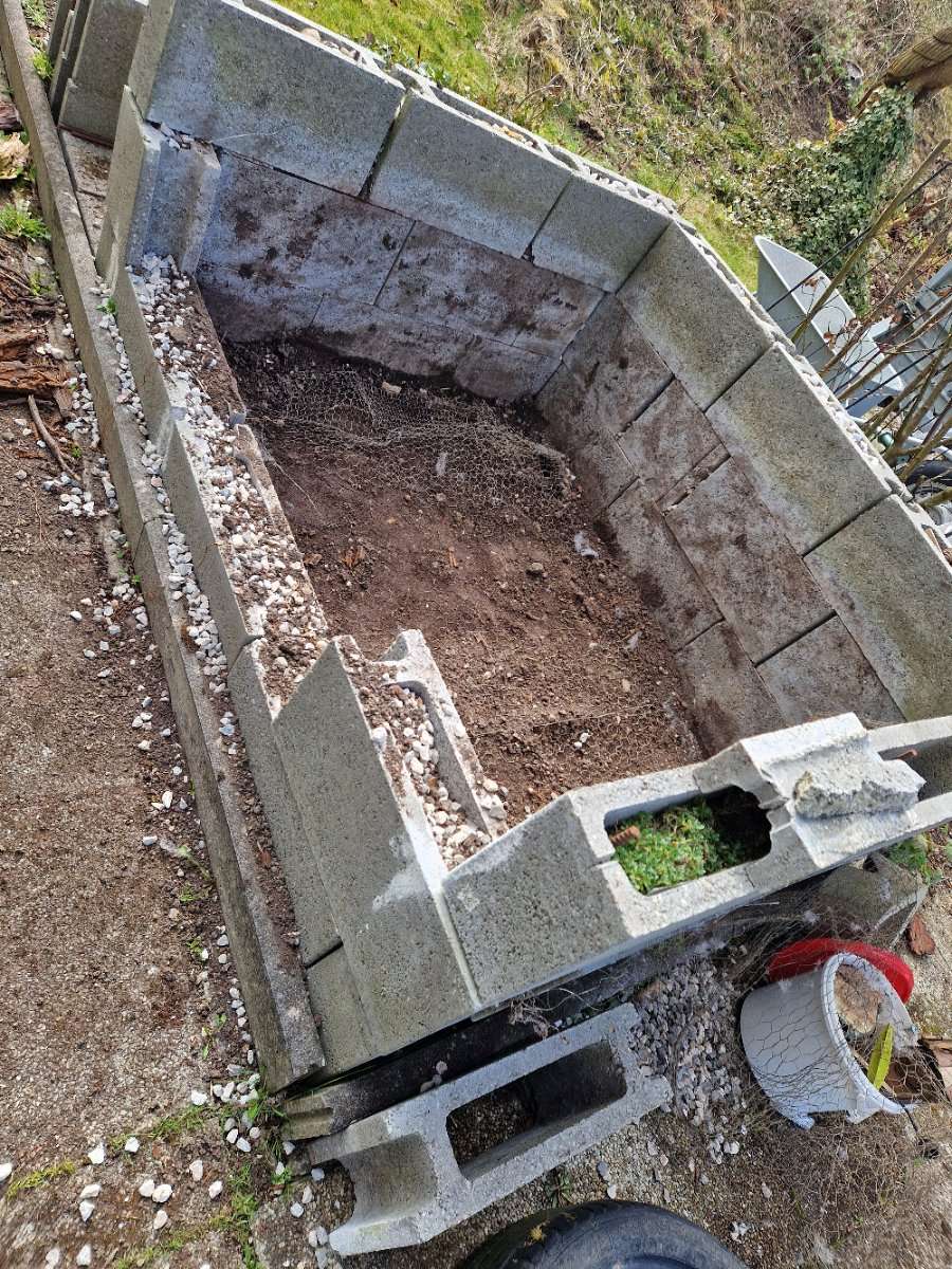 Das Hochbeet muss weg, also auch die Steine. Sind ca. 40 Stück Nur Selbstabholung!