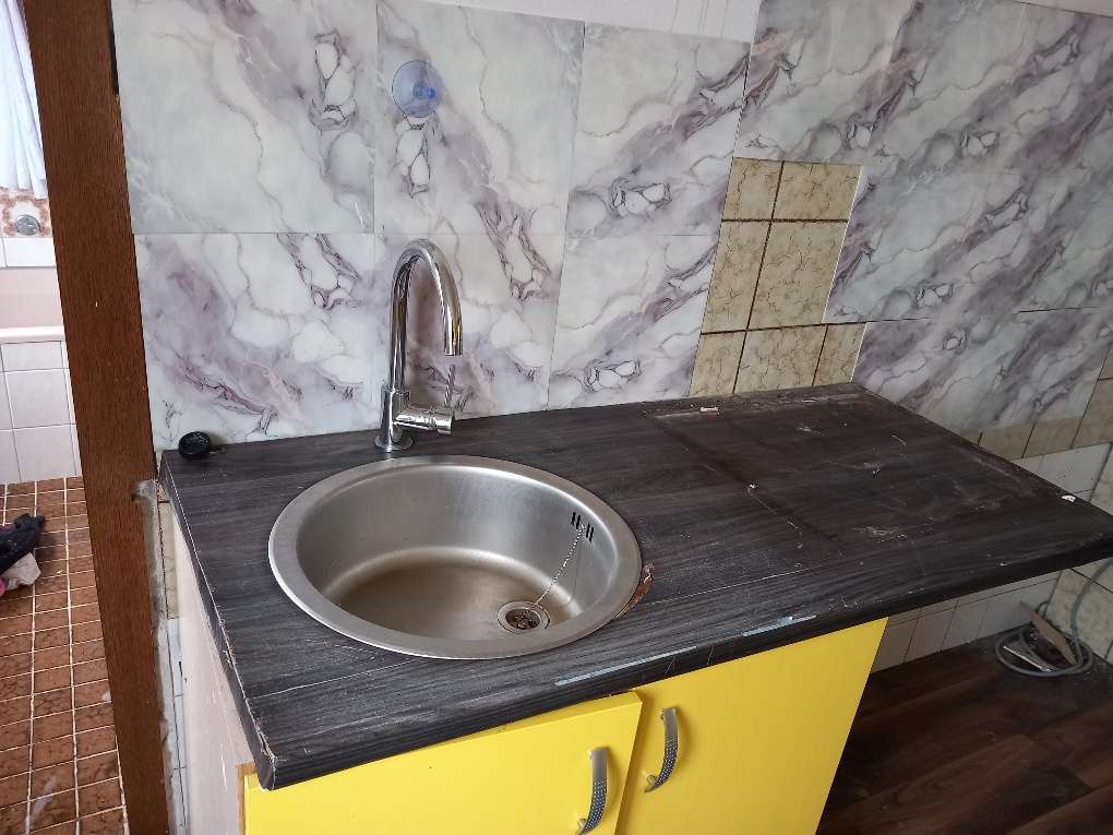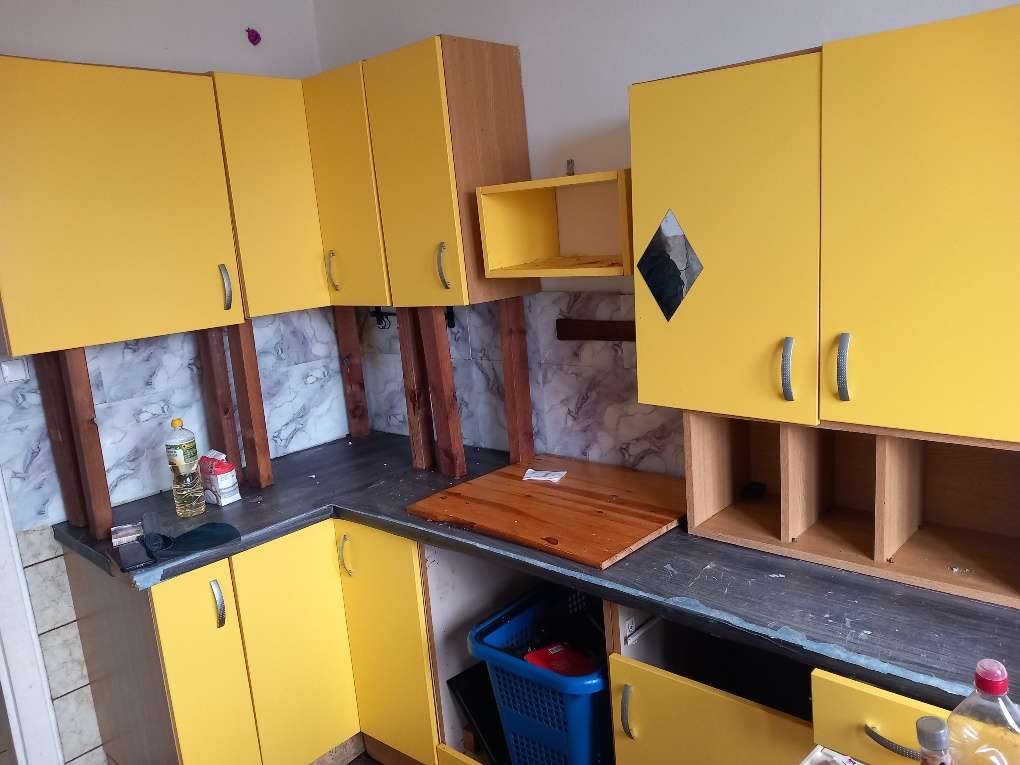 Gratis, wasserhahn ist neu 80 NP Wohnungsräumung alles muss raus War vorher eine "L -Form" küche Arbeitsplatte wurde geschnitten und schwarz foliert Wers braucht, bitteschön die holzfüße kann mann runtermachen und alles auf die Wand montieren