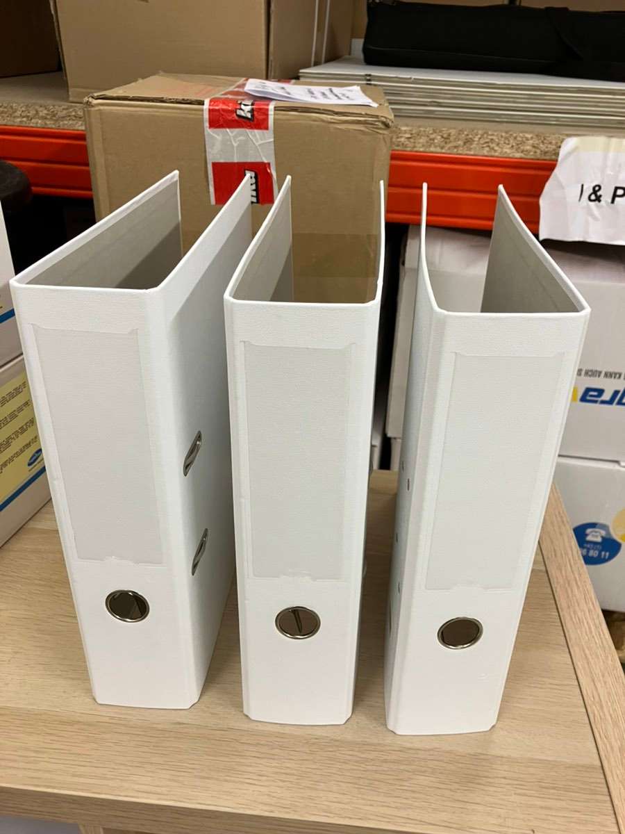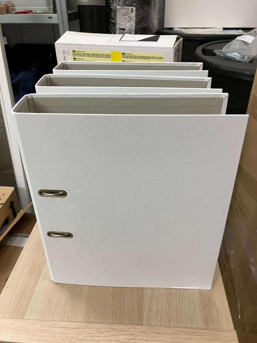 100 A4 Ordner weiß - auch einzeln erhältlich.