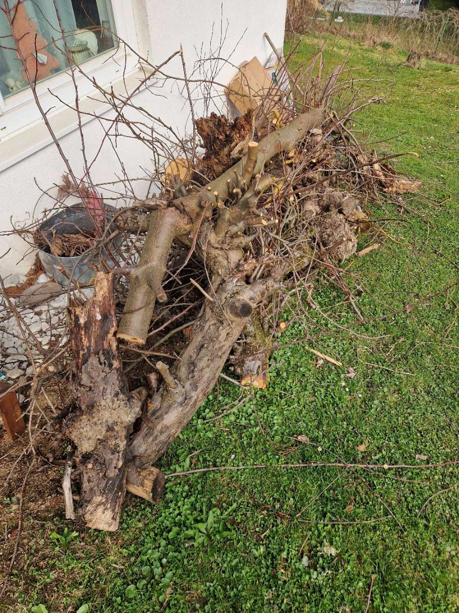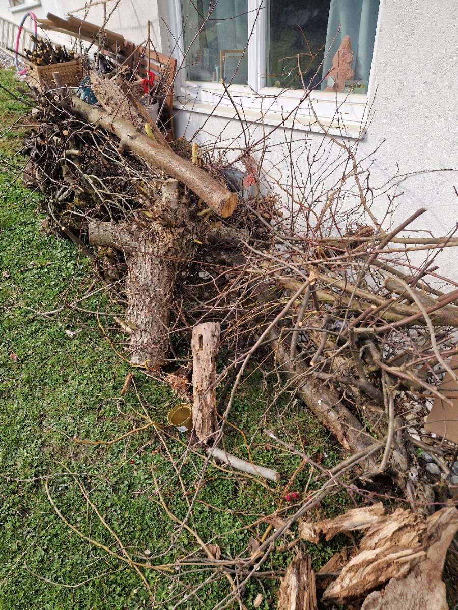 Apfelbaum als Brennholz zu verschenken. Voraussetzung ist allerdings die Mitnahme der dünnen Äste (Grünschnitt)
