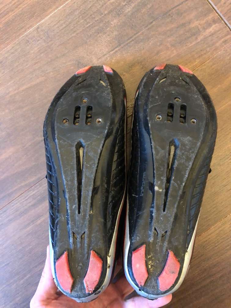 * 1 Boa Verschluss + zwei klettverschlüsse pro Schuh * Größe 43 * Sohle aus Kunststoff * Für Dreipunkt Cleats Schuhe haben an der Unterseite Gebrauchsspuren, da mit ihnen über lose Steine gegangen werden musste.