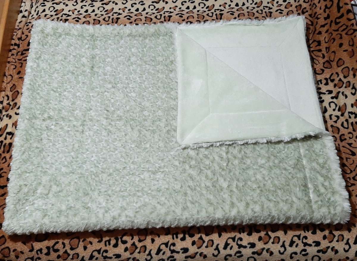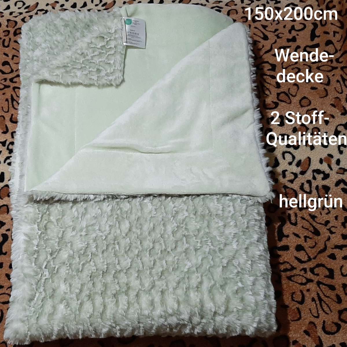 Verschenke weiche und kuschelige Wendedecke in Kaninchenfell-Optik und Softplüsch. Farbe: pistaziengrün/hellgrün, Maße: 150 x 200 cm, von Edelzeit Heimtextilien, gekauft bei HSE. Luxus Kuscheldecke mit 2 verschiedenen Material-Seiten: 1x aus...