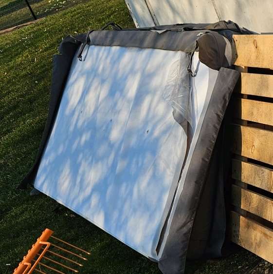 Alte Abdeckung. Aufgeschnitten weil Wasser drinnen war. Dickes Styropor. Masse 2,3 x 2,3 Meter
