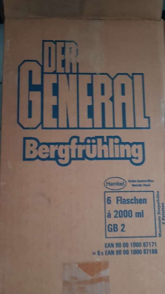 Der General, Bergfrühling, Karton ohne Inhalt, Putzmittel ca. 1980er oder 1990er, vintage, alt, retro, Sentimentalität