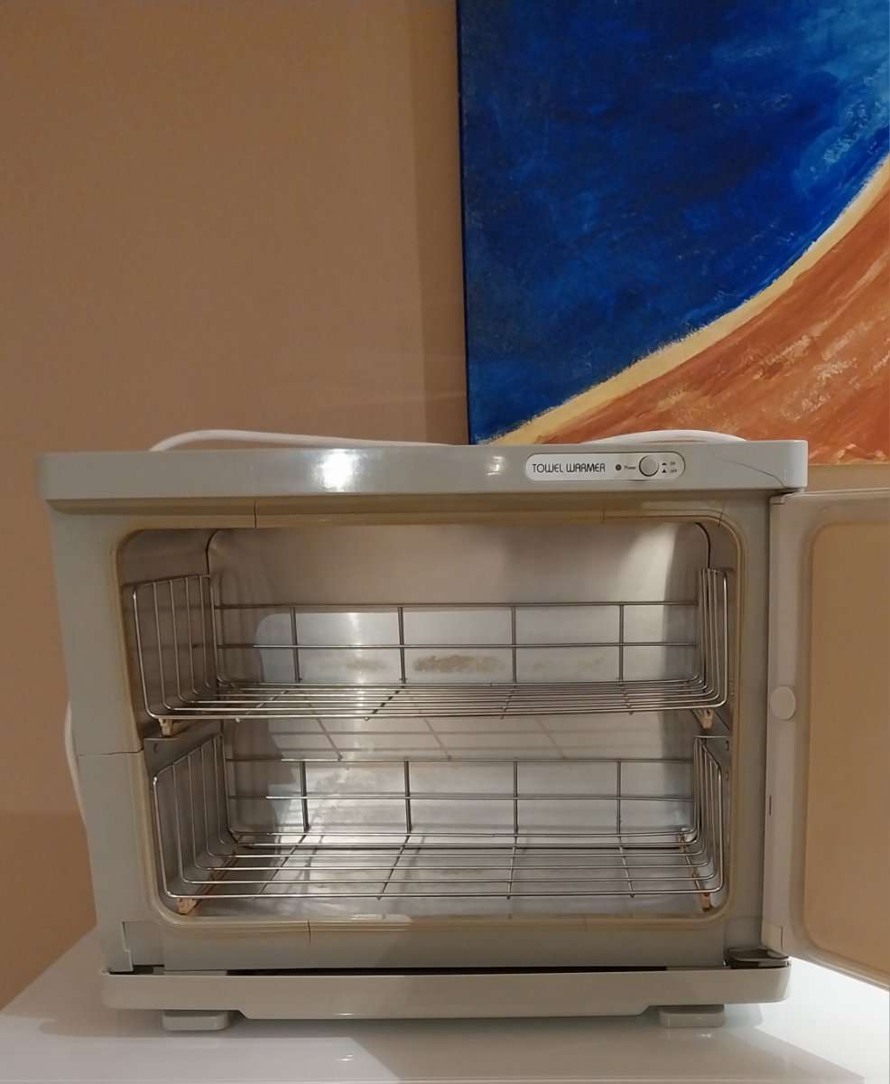 Warme Tücher nach der Massage trocken oder feucht sind besonders angenehm. Ich verschenke meinen Handtuchwämer für Massage und Therapie wegen Praxisauflösung. Funktioniert einwandfrei!