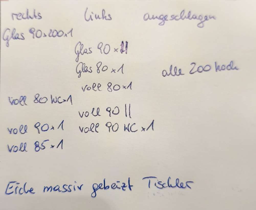 4 Stück Glastüren und 7 Vollholz Innentüren abzugeben! Eiche massiv Maße siehe Bild! Selbstabholung in Wohlfahrts, WT