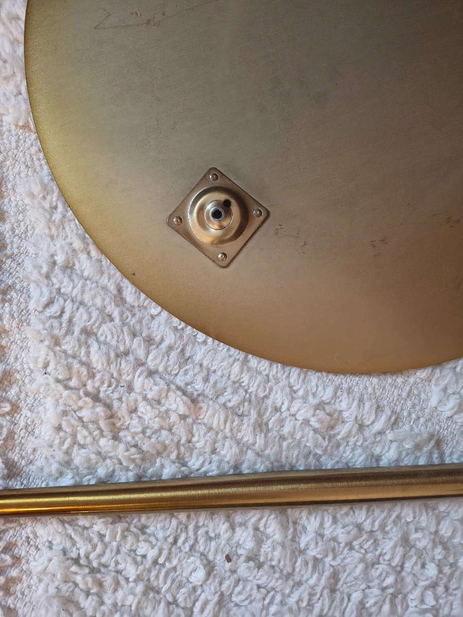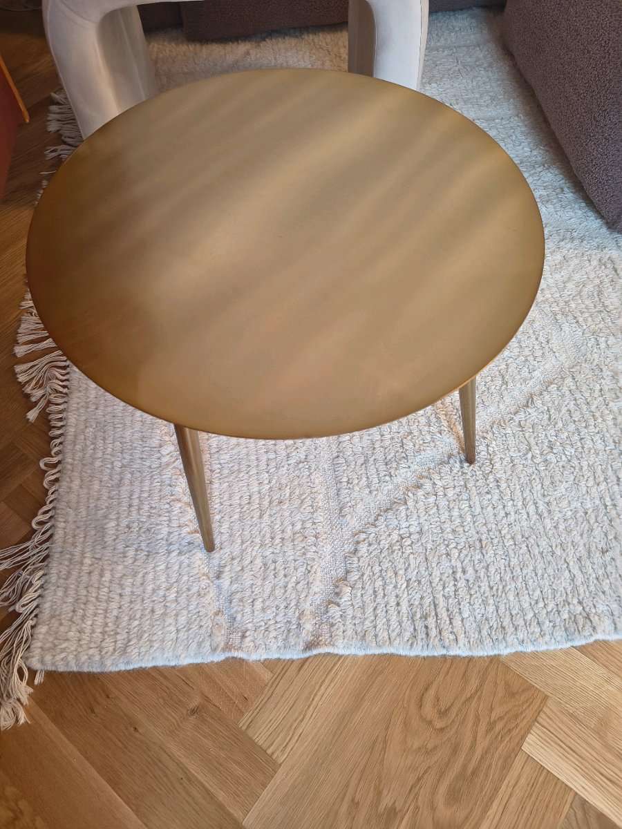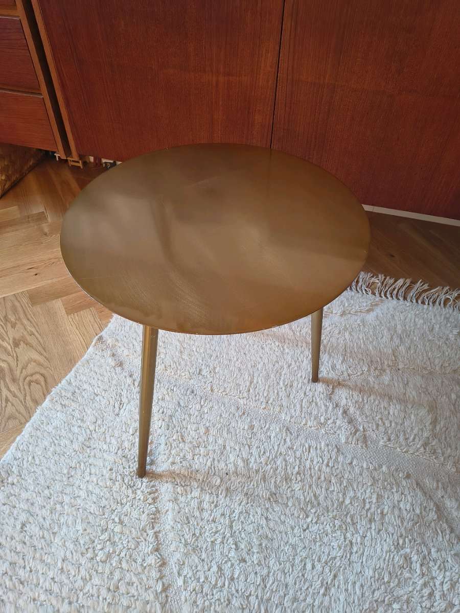 Goldenes Tischchen 45cm Durchmesser. Ein Bein lässt sich leider nicht mehr anschrauben weil das Gewinde defekt zu sein scheint. Aber vielleicht kann es ja jemand reparieren.