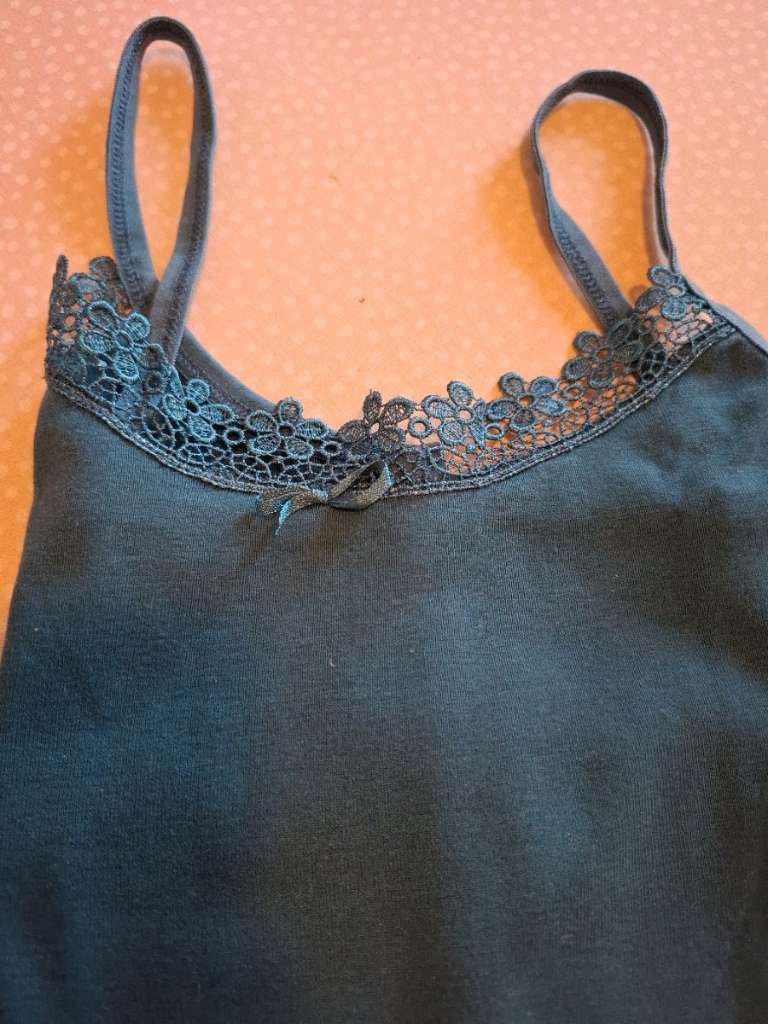 Top mit Spagettiträger Größe S/M Farbe dunkelgrün Versand nur wenn auch etwas gekauft wird! Schaut auch auf meine anderen Angebote zB Bücher, Deko, viele Gratissachen ... Privatverkauf