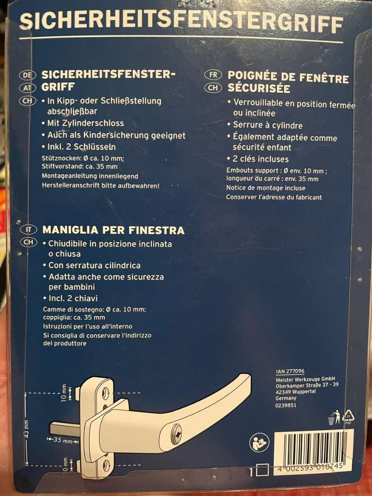 Fenstergriff versperrbar, Sicherheitsgriff mit zwei Schlüsseln Selbstabholung nach rechtzeitiger telefonischer Absprache Postversand innerhalb Ö zuzüglich der anfallenden Versandkosten Privatverkauf, keine Garantie, keine Gewährleistung, kein Umtausch...