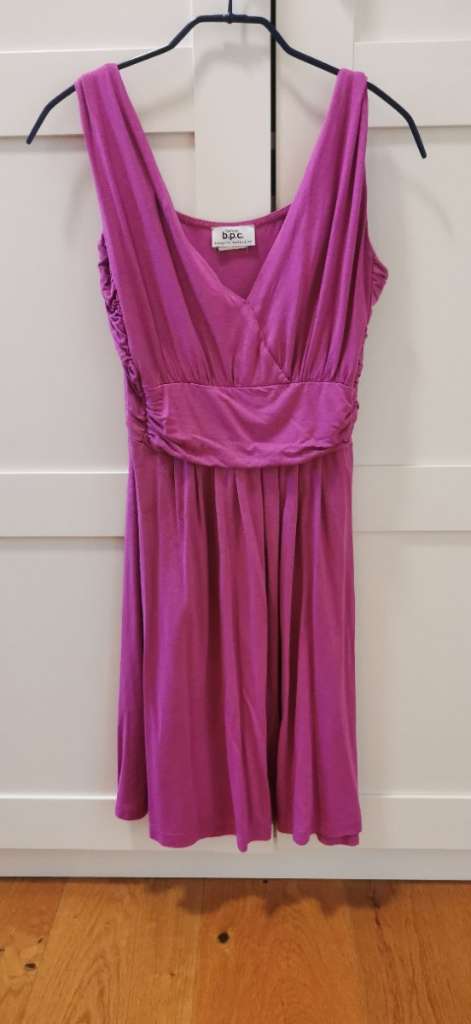 Verschenke Kleid. Da es einen sehr tiefen Ausschnitt hatte, wurde dieser etwas zugenäht - siehe am Bild. Ansonsten keine Flecken oder Löcher.