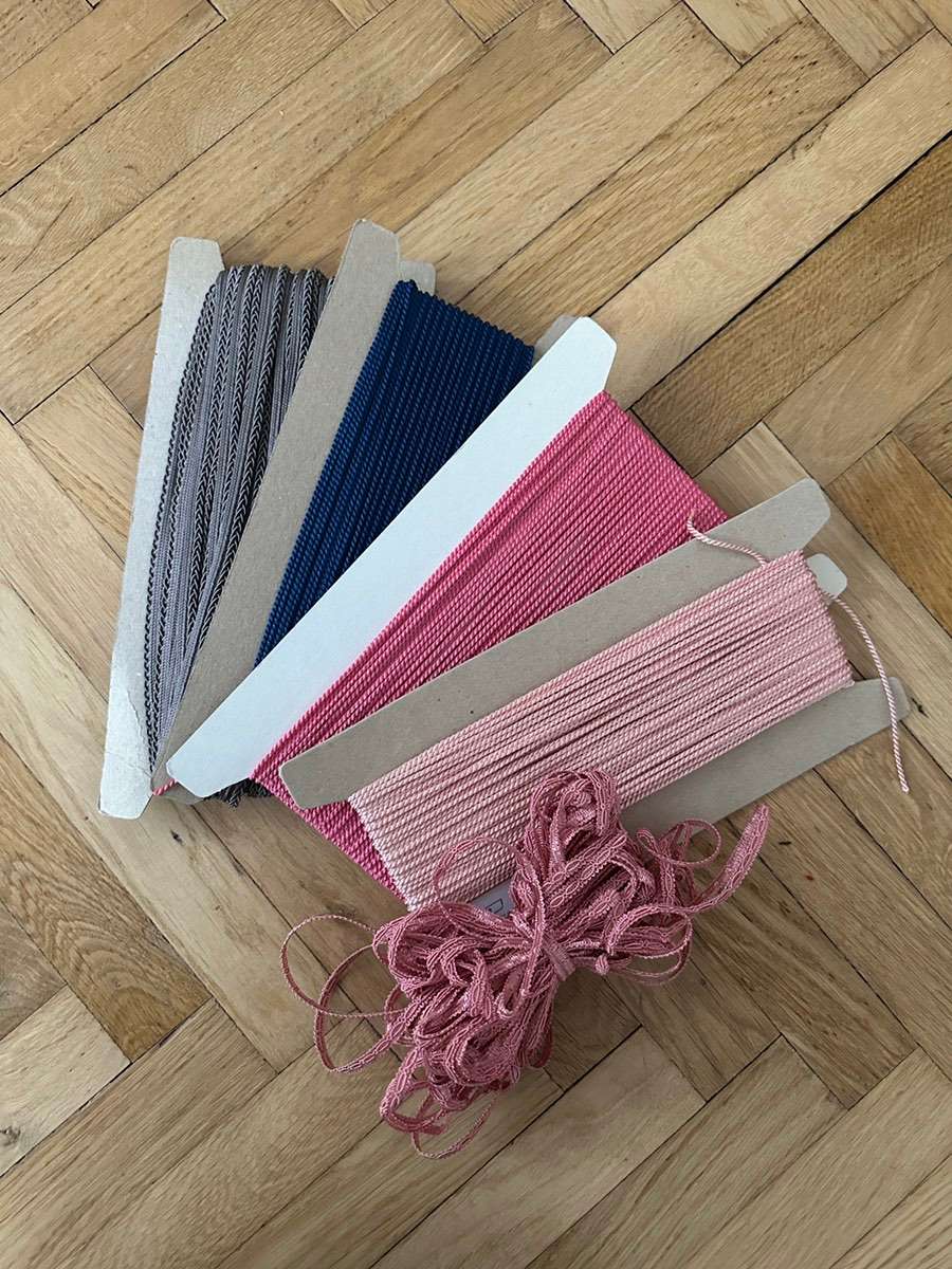Set an Kordeln und Spitzenbänder als Bastelzubehör oder zum Nähen Gesamtpreis 5€ für alles zusammen Unterschiedliche Farben (Grau, Blau, Rosa) Nur Selbstabholung