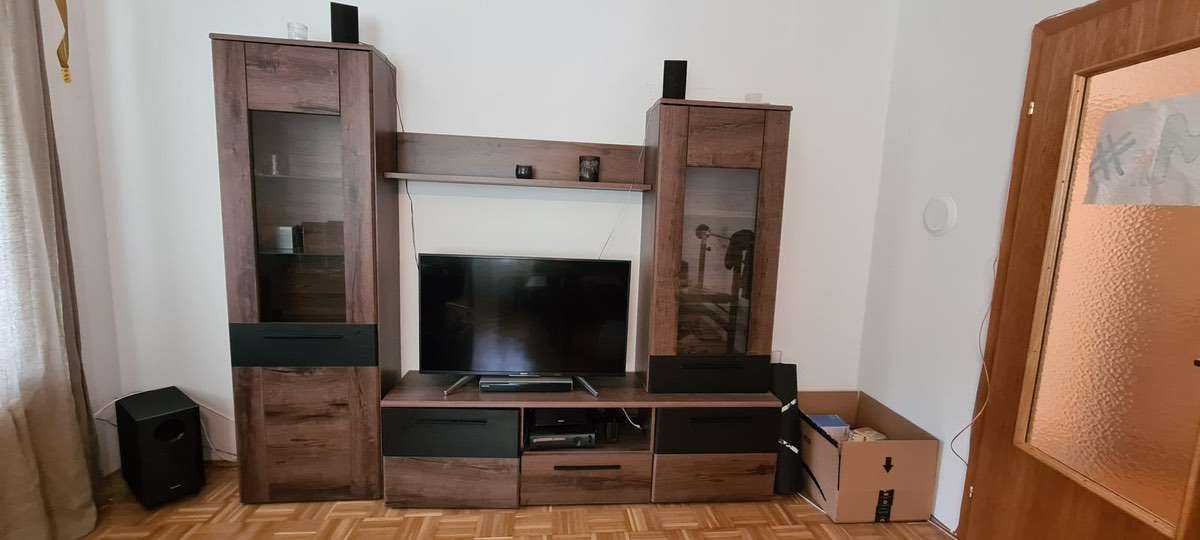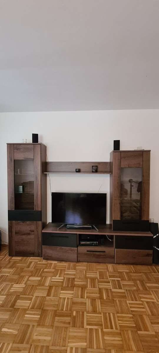 Wir verschenken unsere Wohnwand. Sie besteht aus 2 Kästen, einem Lowboard und einem Regalbrett. An einer Ecke löst sich das Furnier leicht ab, kann aber geklebt werden. Maße: insgesamt 240cm breit Kasten links: 60cm breit, 197cm hoch, 34cm tief Kasten...