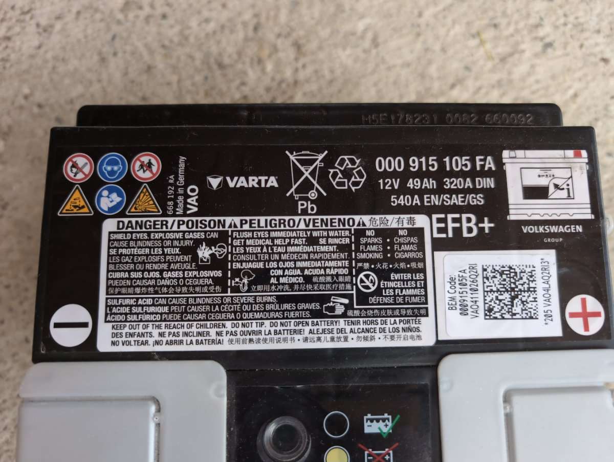 Varta, 12 Volt Batterie, 000 915 105 FA, 49Ah, EFB+, original aus VW ID3
