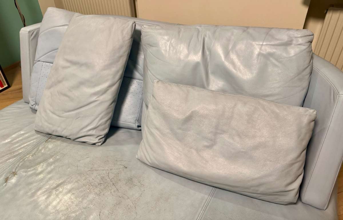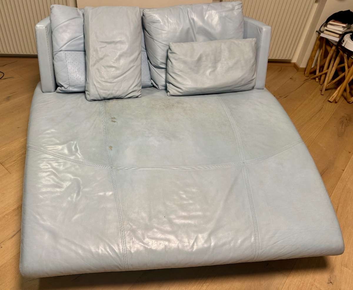 In den 90igern war diese Designerliege von ROLF BENZ was ganz besonderes . . . . OHNE DER PÖLSTER - das Leder auf der Liege weist starke Gebrauchtspuren auf. 68 Höhe x 162 Länge x 167 Breite Die vier Pölster können um € 95 erworben werden.