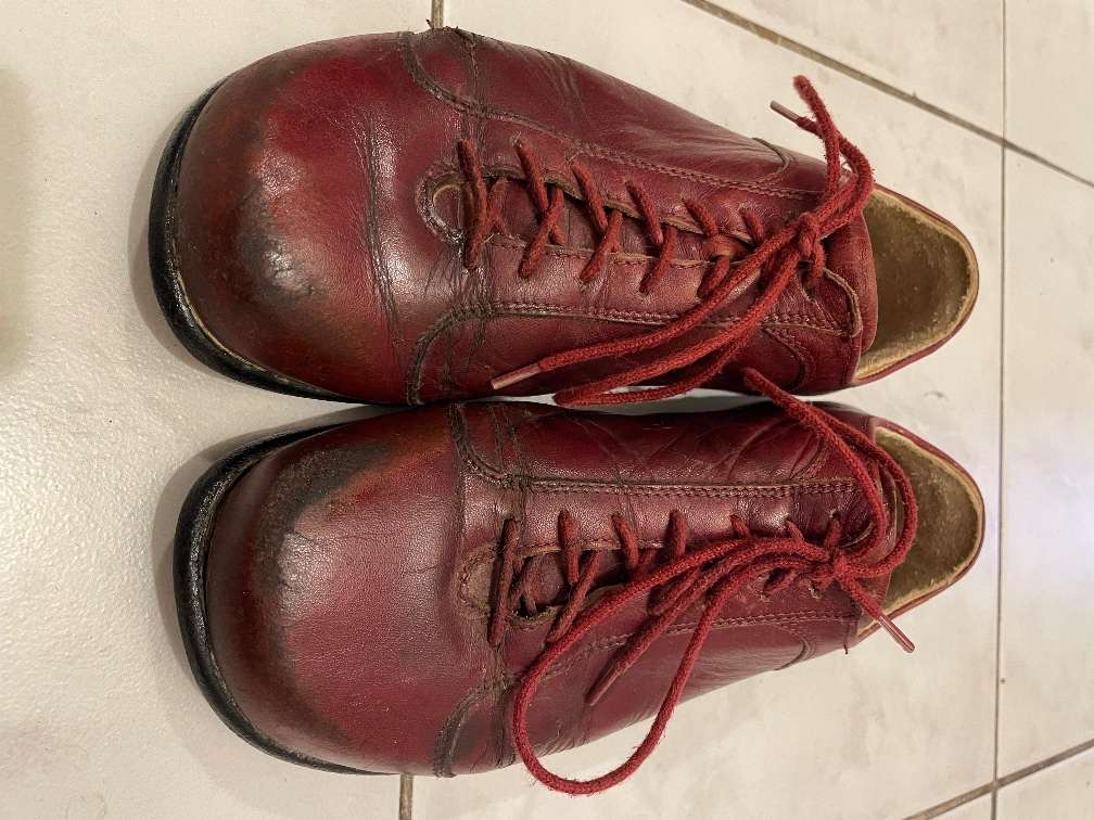 Waldviertler zu verschenken sie wurden einmal zur Reparatur eingeschickt (die Ferse verstärkt, neue Sohle). Seitdem sind sie mir ein bisschen zu klein. Rechts ist das Leder an einer Stelle bisschen eingerissen und vorne sind sie schon etwas abgestoßen,...