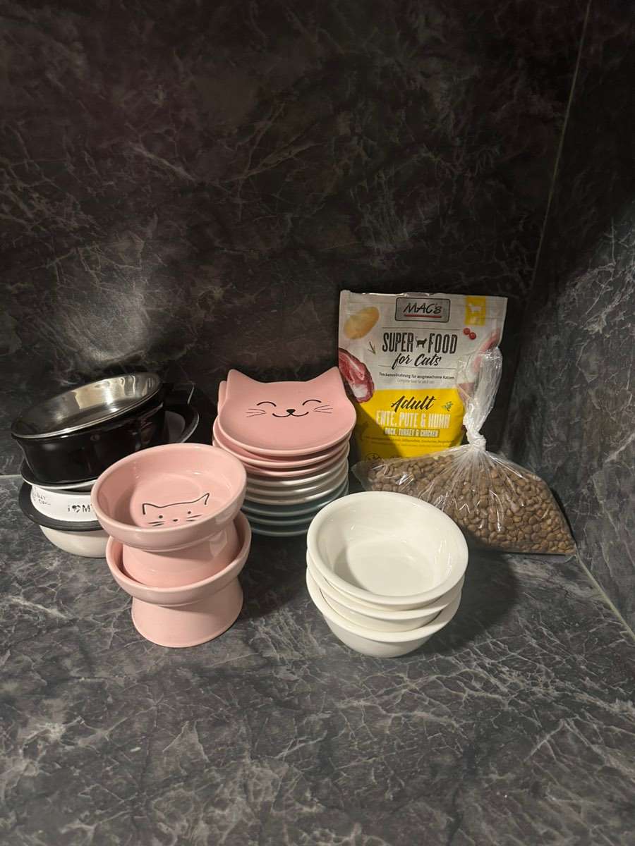 MACS Trockenfutter (schon geöffnet), verschenke es, da eine meiner Katzen es leider nicht verträgt. Anderes hochwertiges Trockenfutter mit MACS gemischt (im Sackerl, da es in einem Vorratsbehälter war) Diverse Futternäpfe, wir haben neue deshalb brauche...