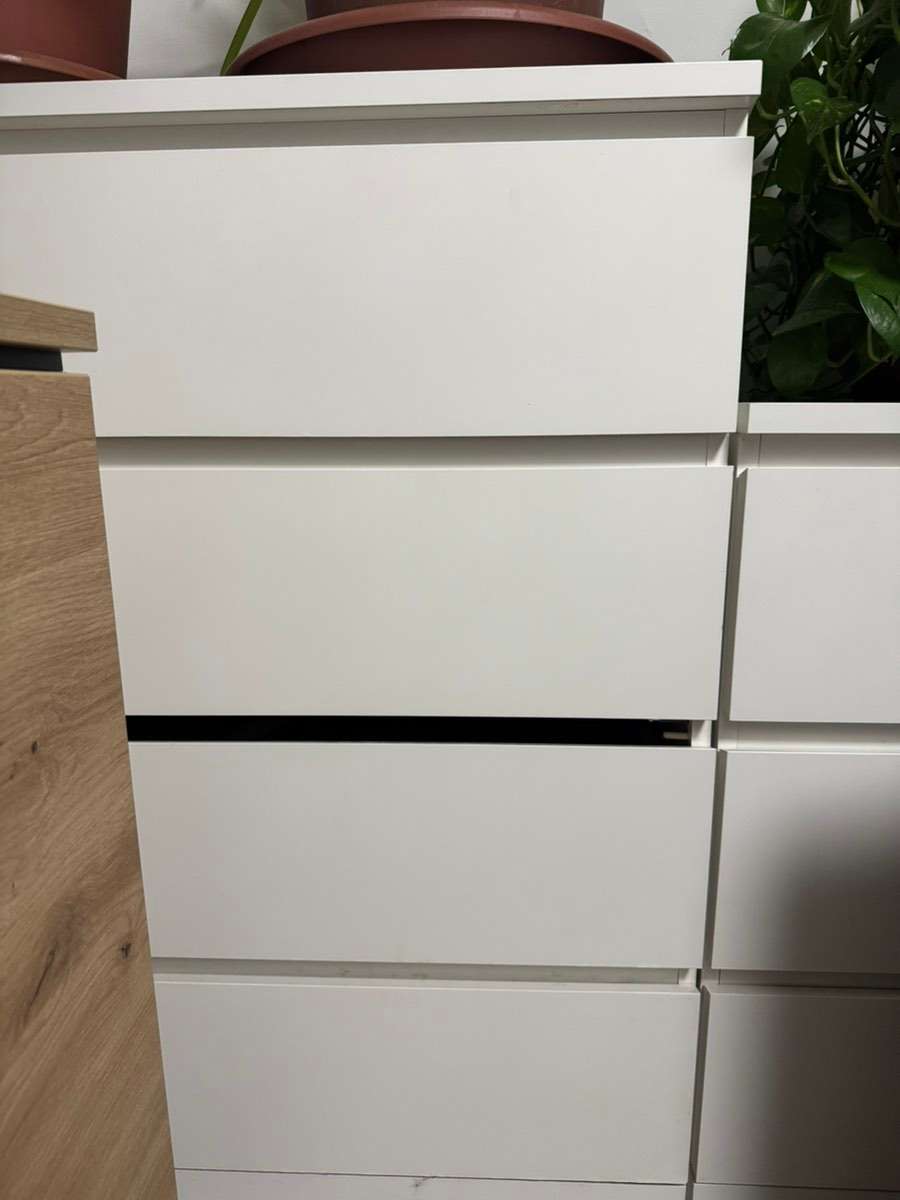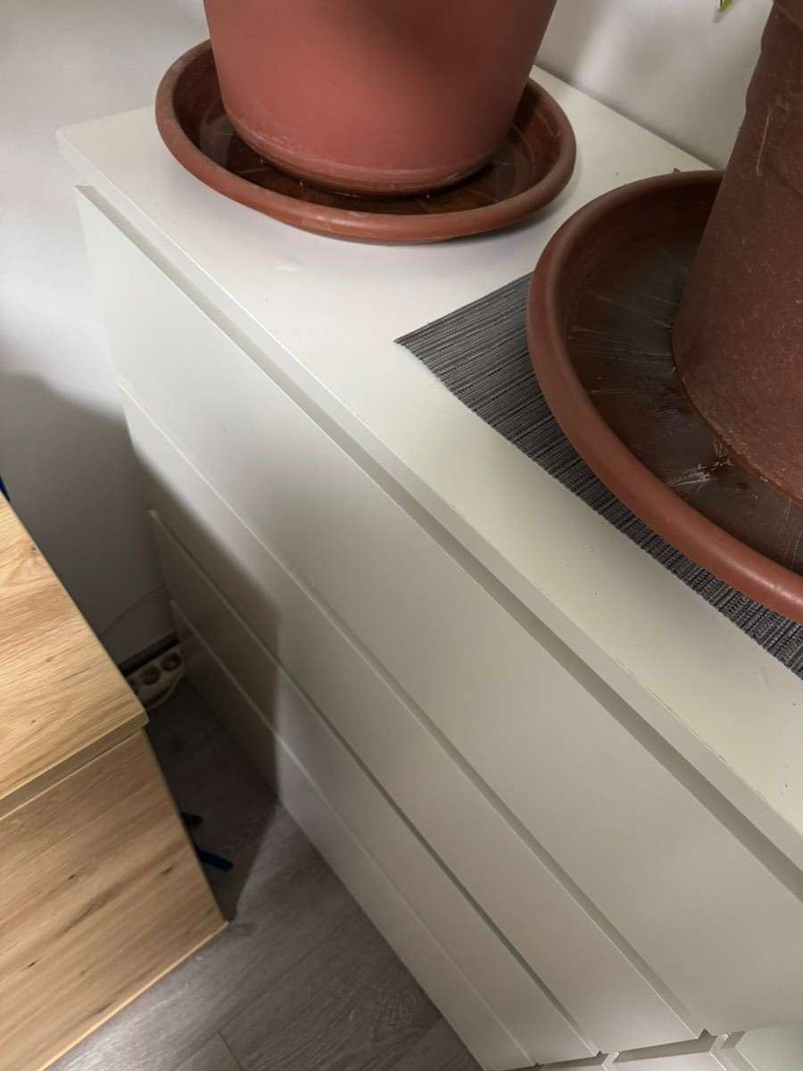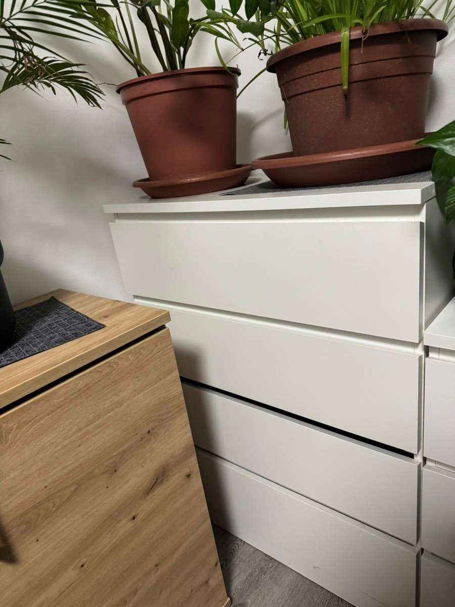 Verschenke Malm Kommode mit 4 Laden. In den Laden is der Lack abgegangen. Siehe foto