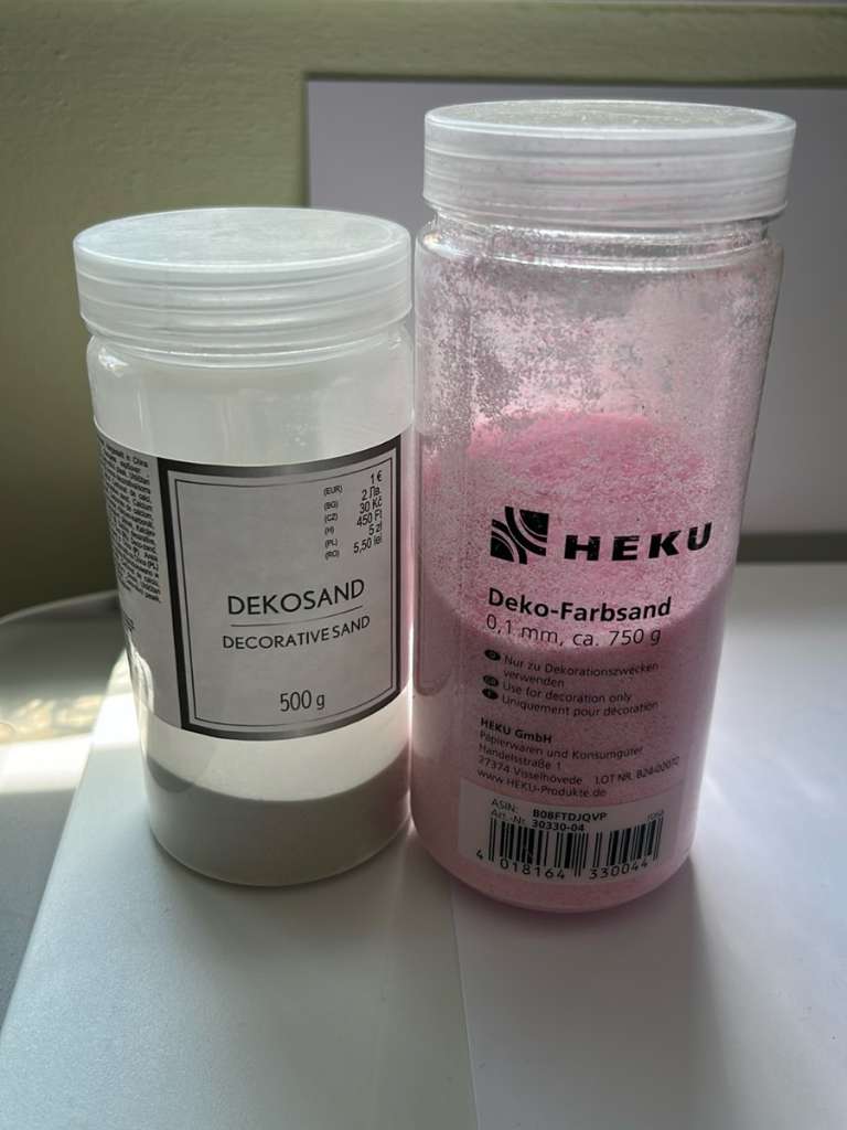 Verschenke Reste vom Farbsand rosa und weiß Z.B. Sandzeremonie