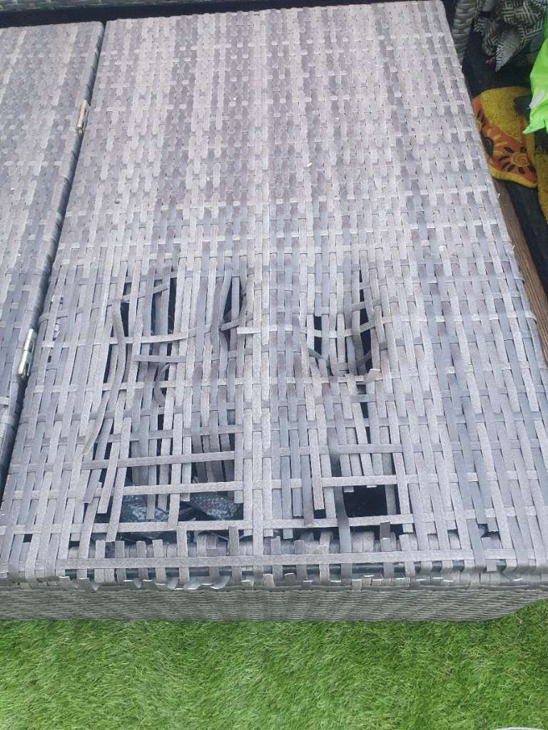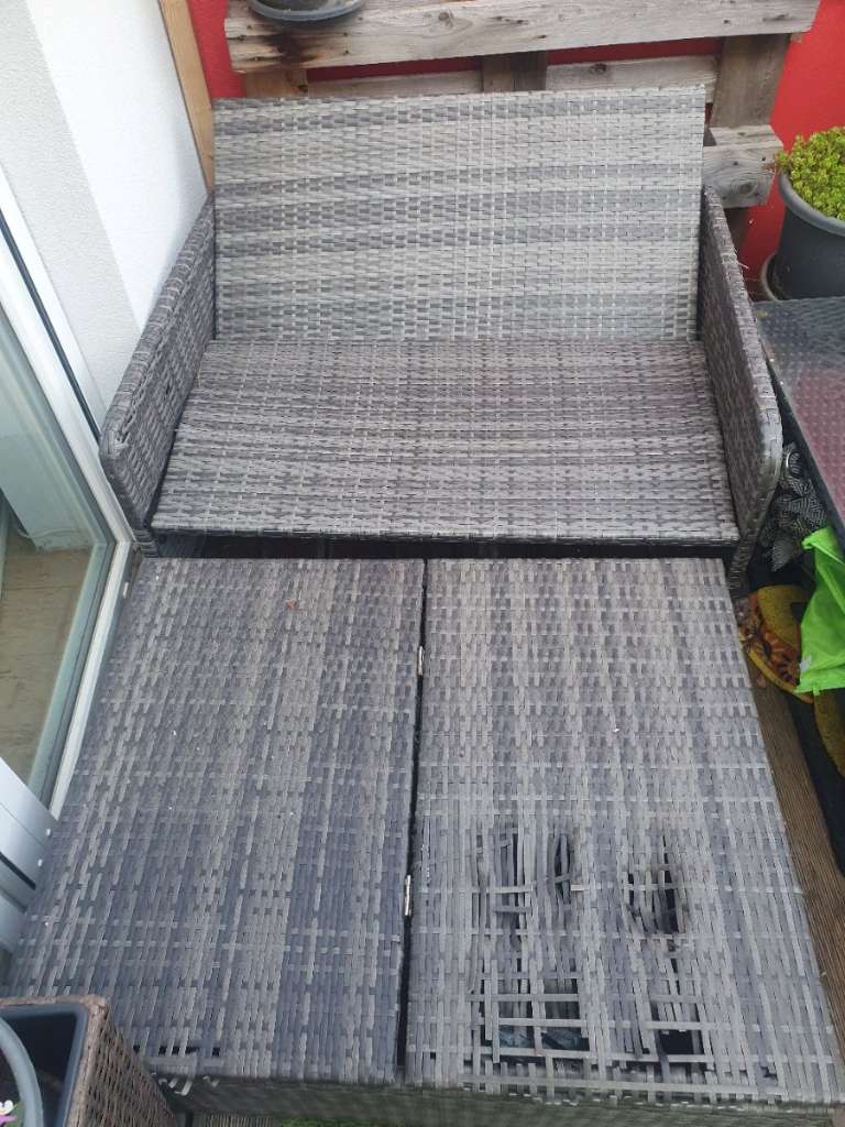 Hat leider ein Loch beim Fußteil Verstellbar, von Sitz auf Liege. Fußteil kann man aufklappen und als Aufbewahrung nutzen